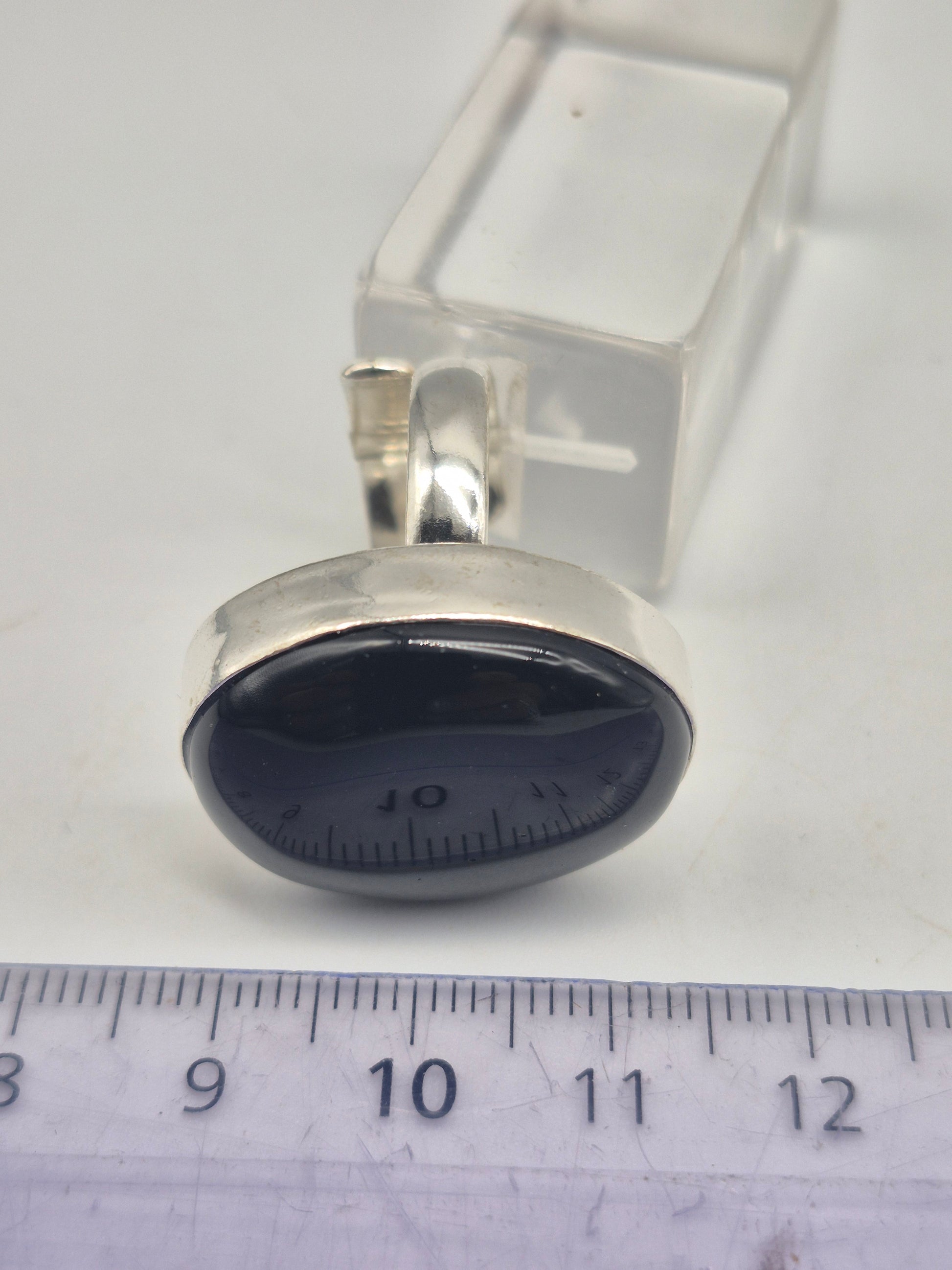 Black Obsidian Adjustable Ring – Silver Plated Cabochon Protection Crystal Jewelry