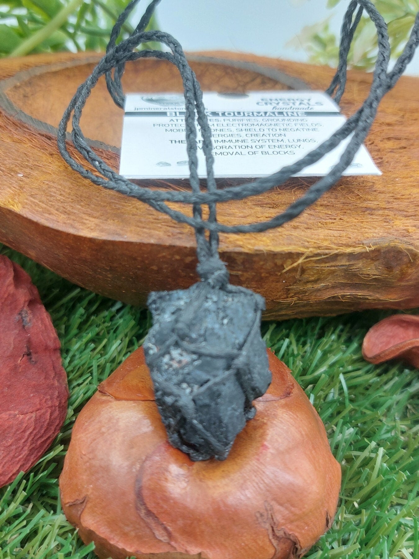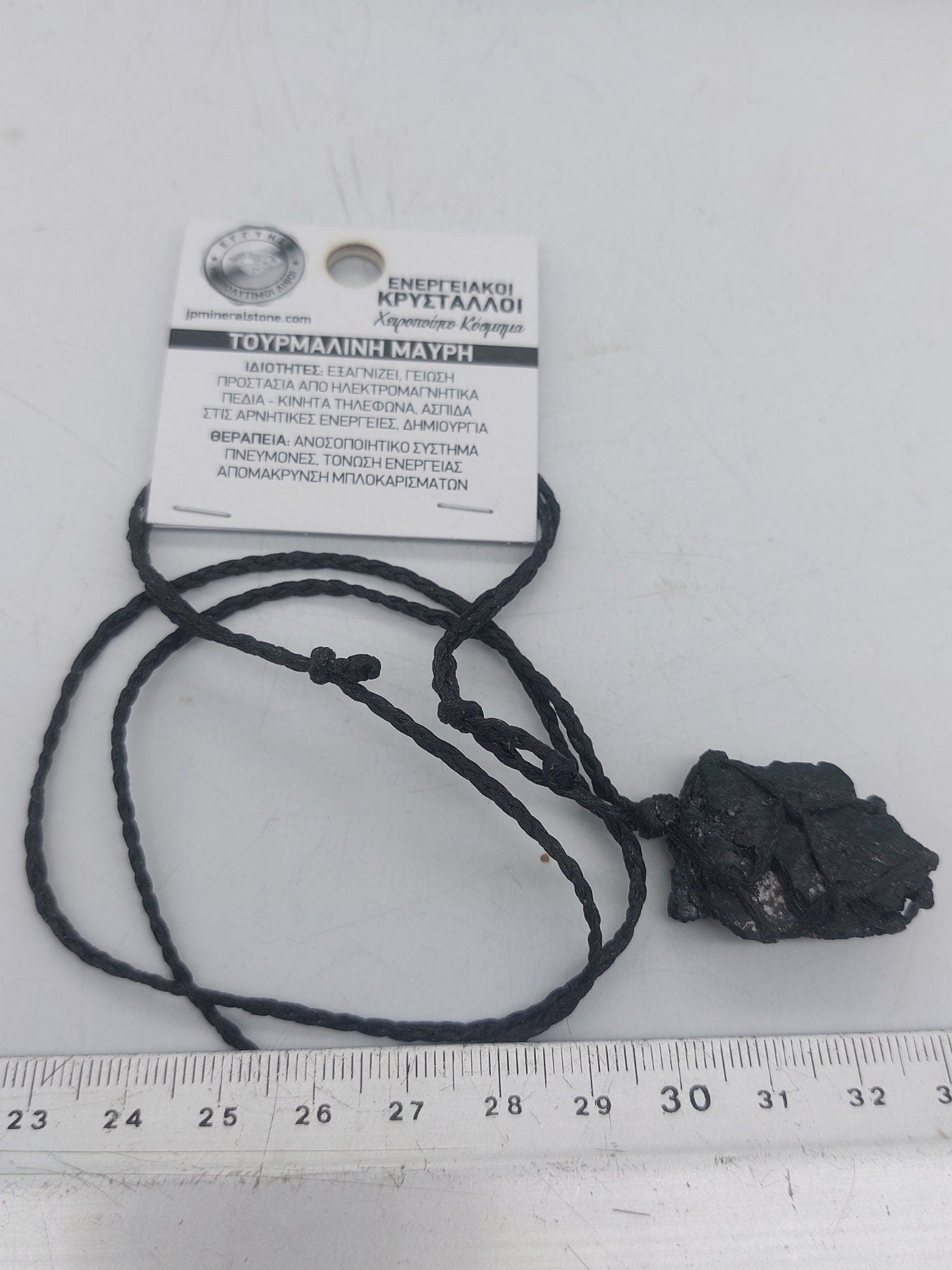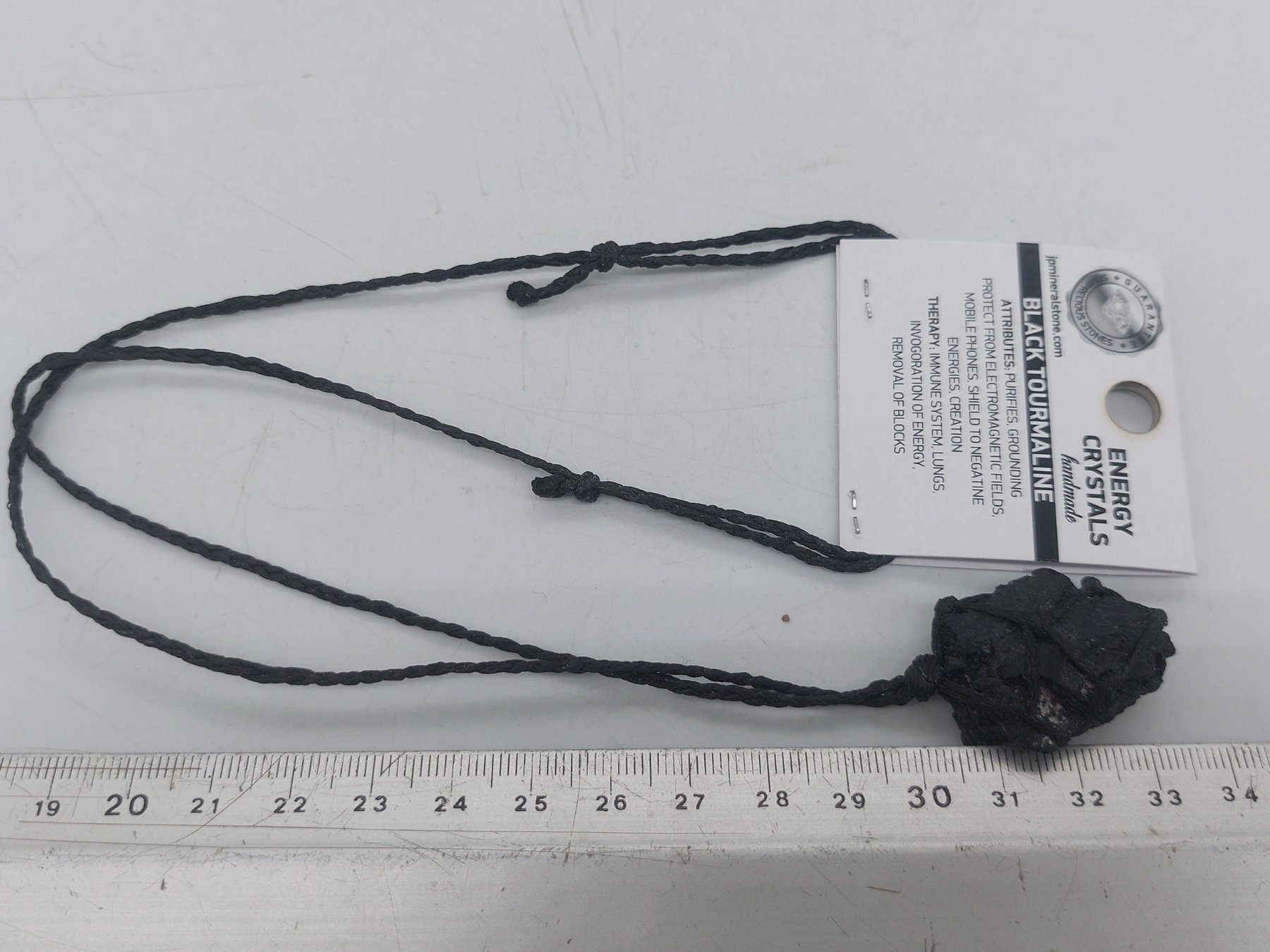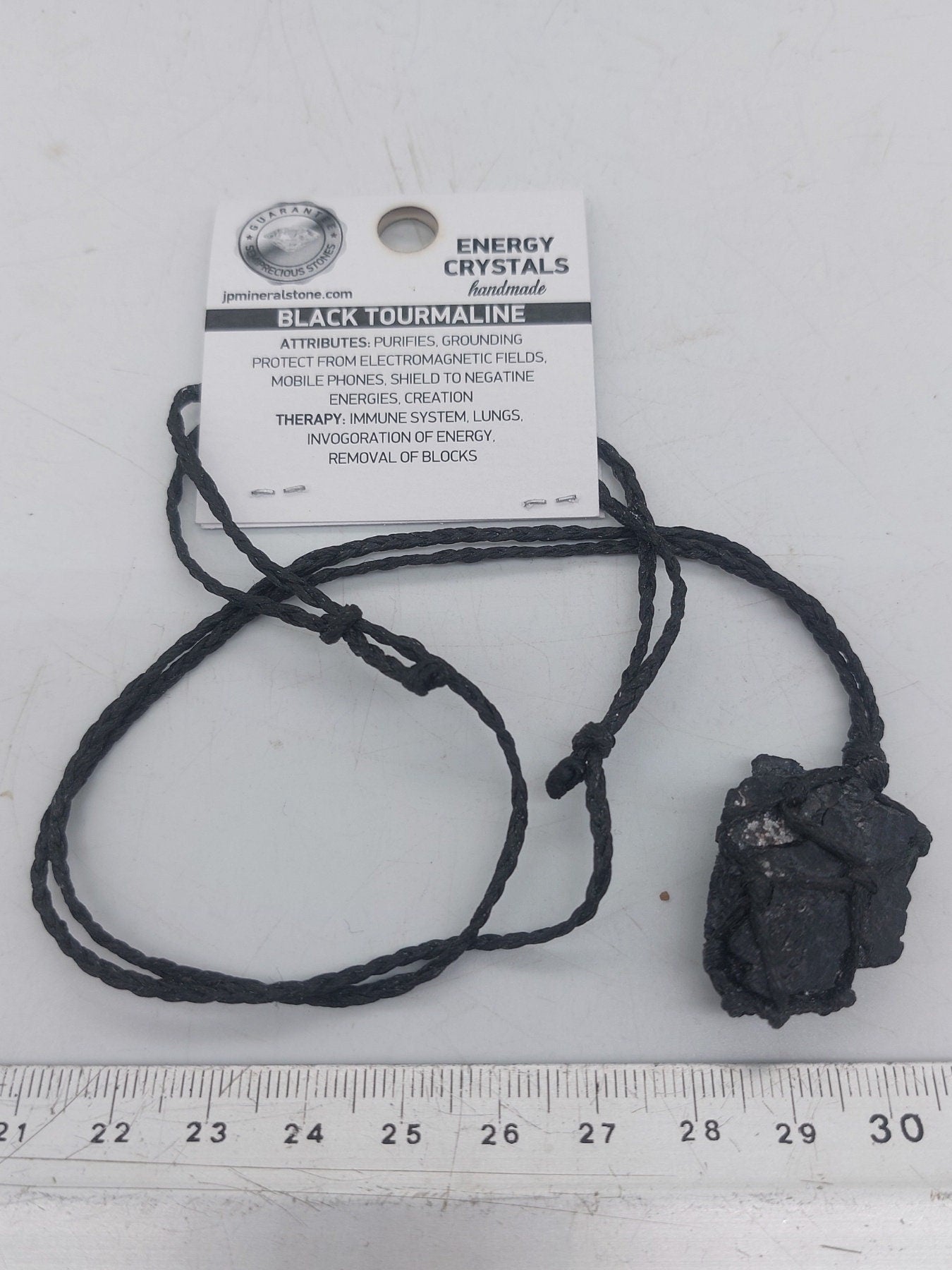 Schwarze Turmalin Rohkristall Makramee Halskette