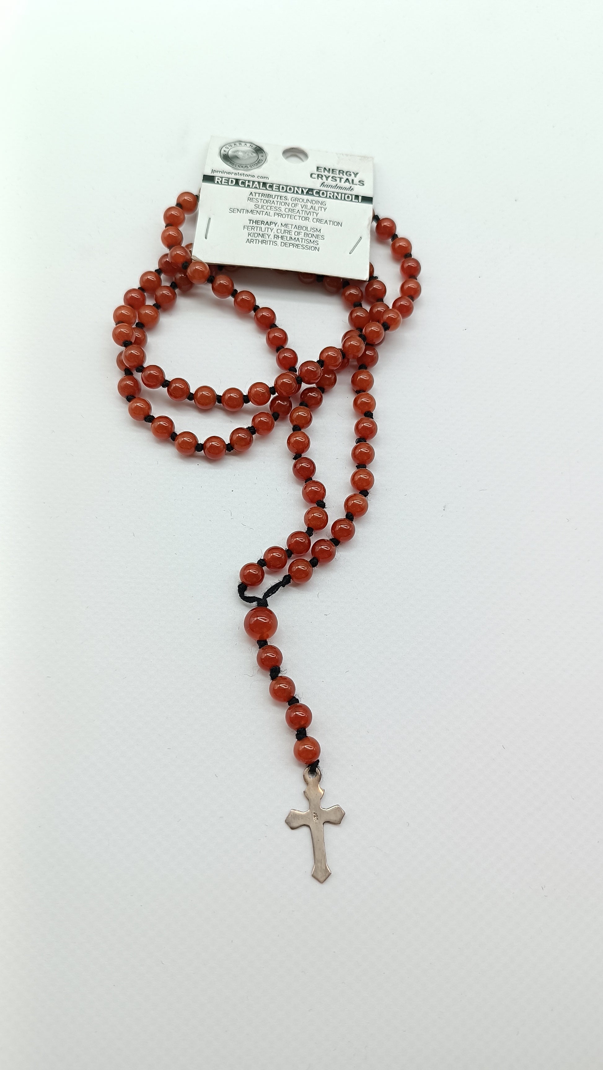Rosenkranzperlen aus Karneolkristall mit Medaillen-Kreuzstück aus 925er Sterlingsilber