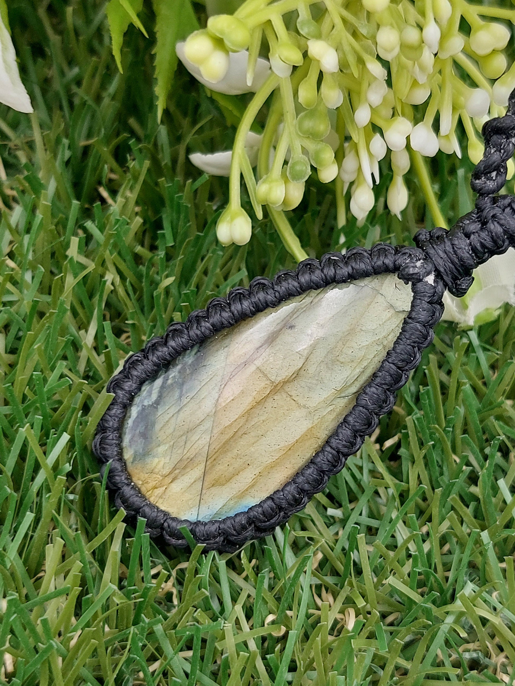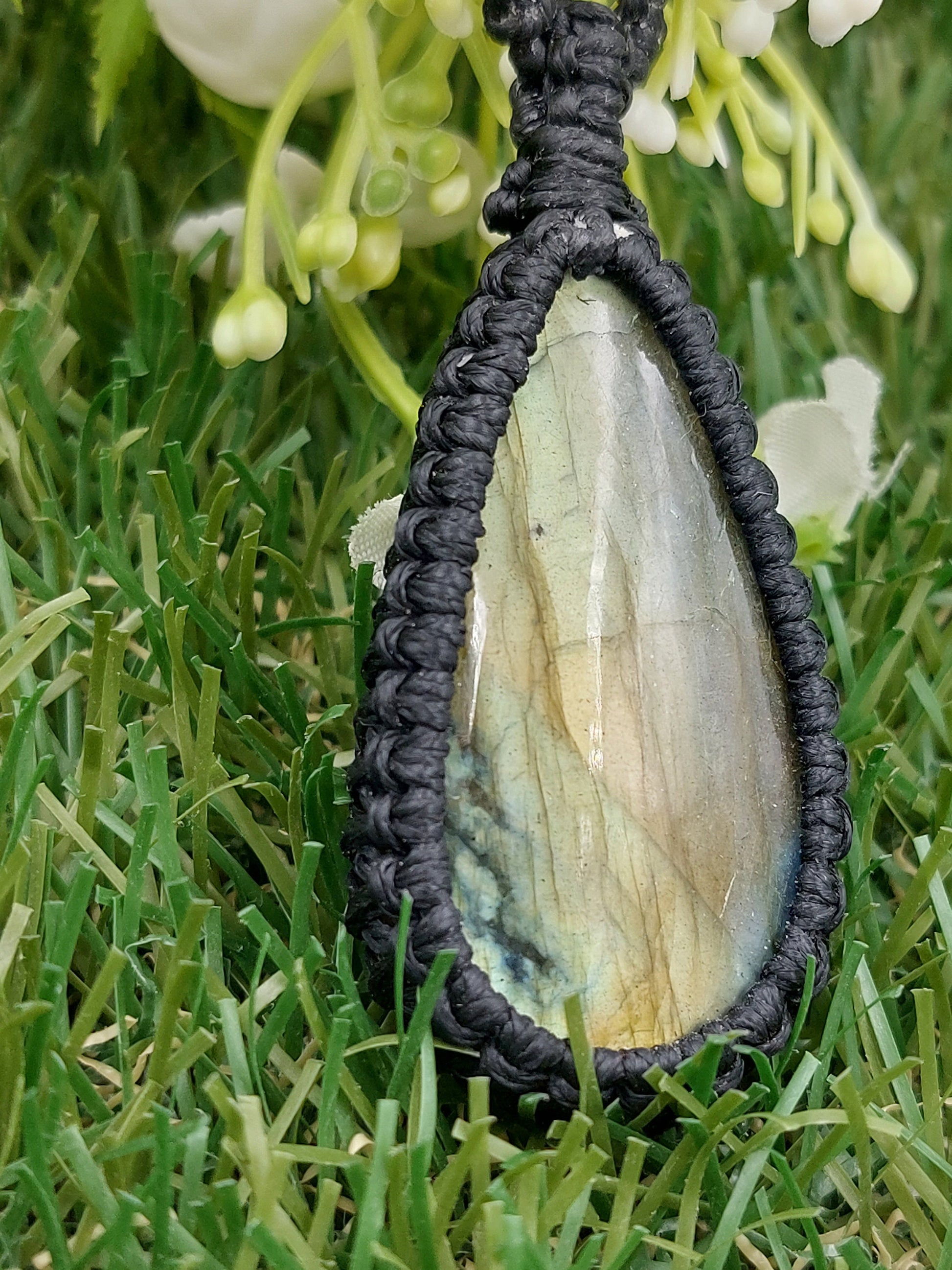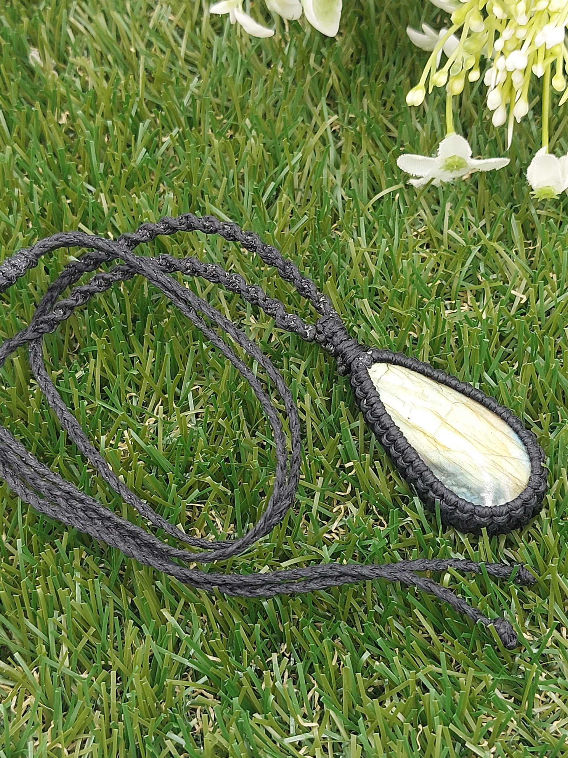 Labradorit Kristall Handgemachte Gewickelte Makramee Halskette
