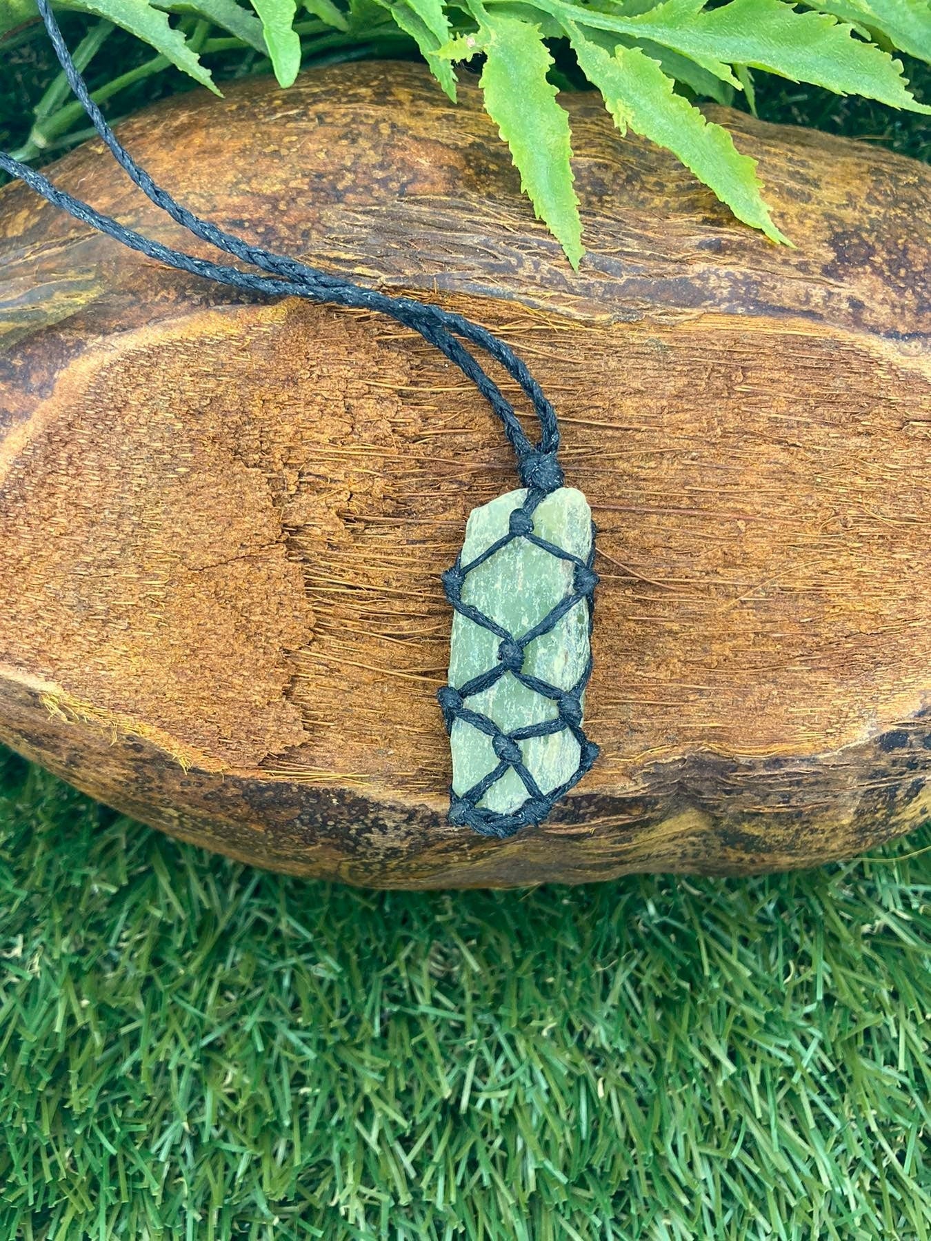 Natürliche grüne Kyanit-Kristall-Makramee-Halskette
