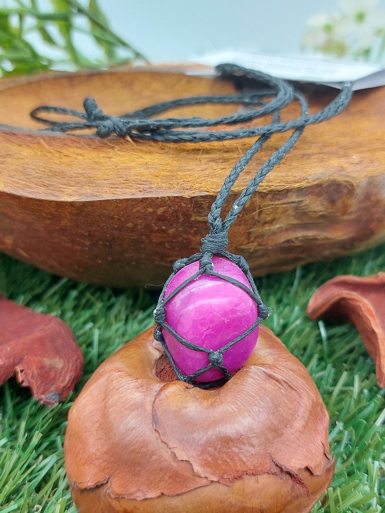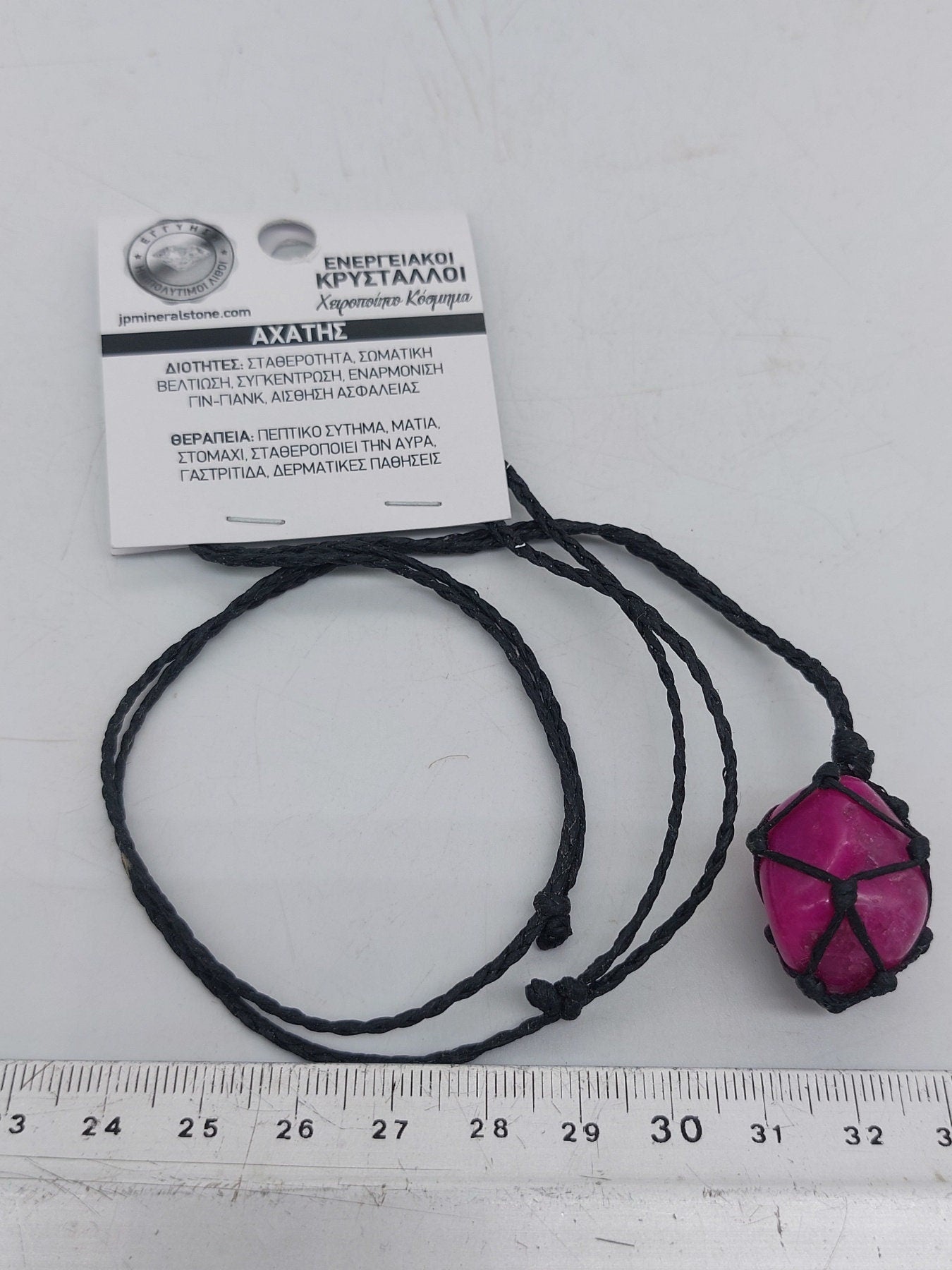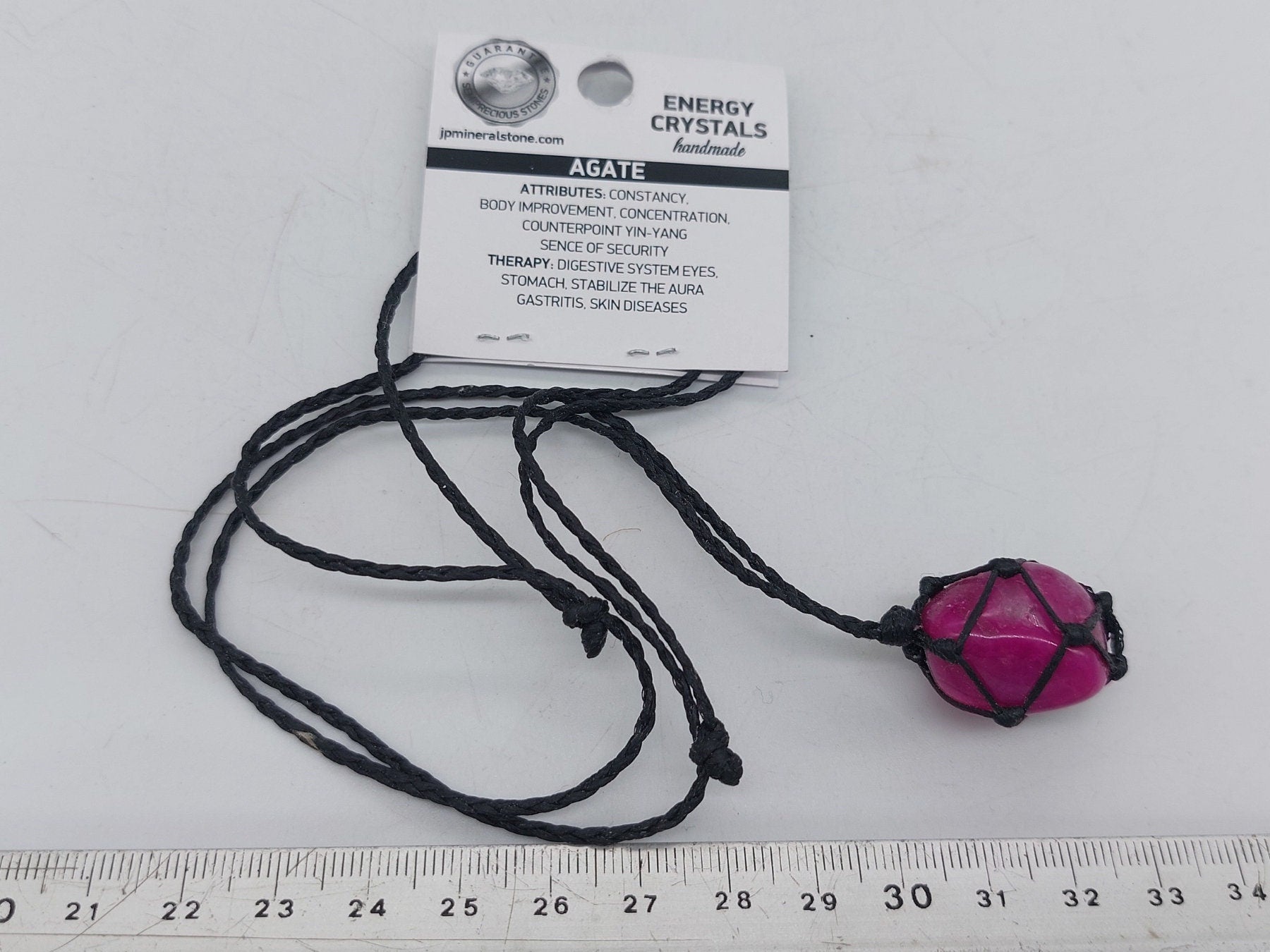 Rosa polierter Achat Kristall Heilung Makramee Halskette Schutz Geschenk Zubehör
