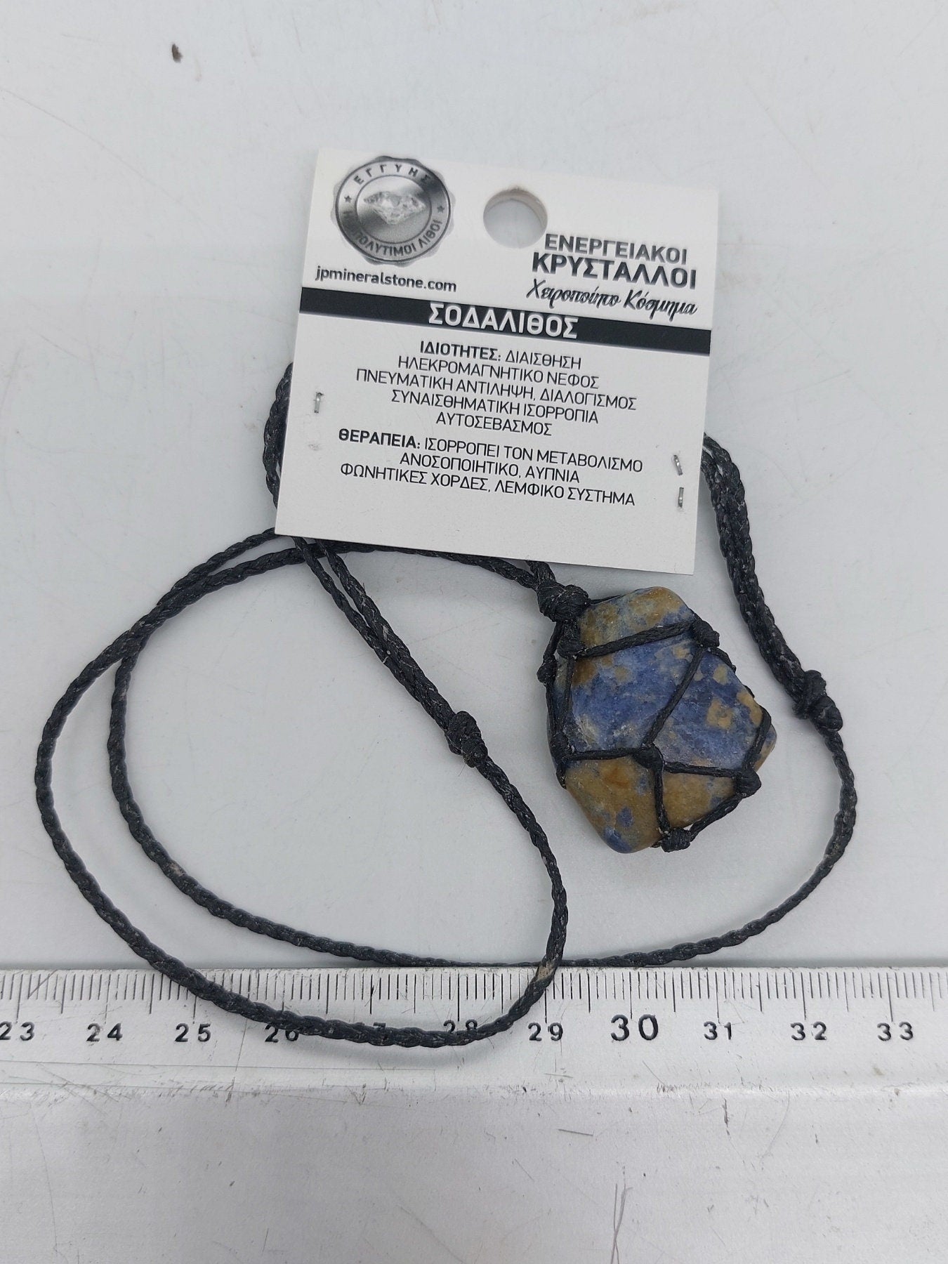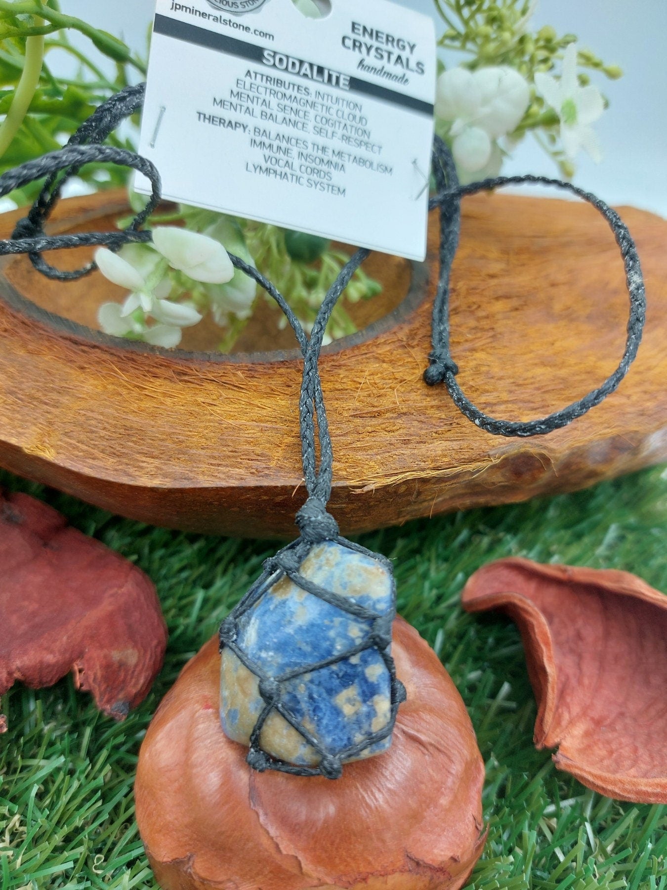 Makramee-Halskette aus poliertem Sodalith-Kristall