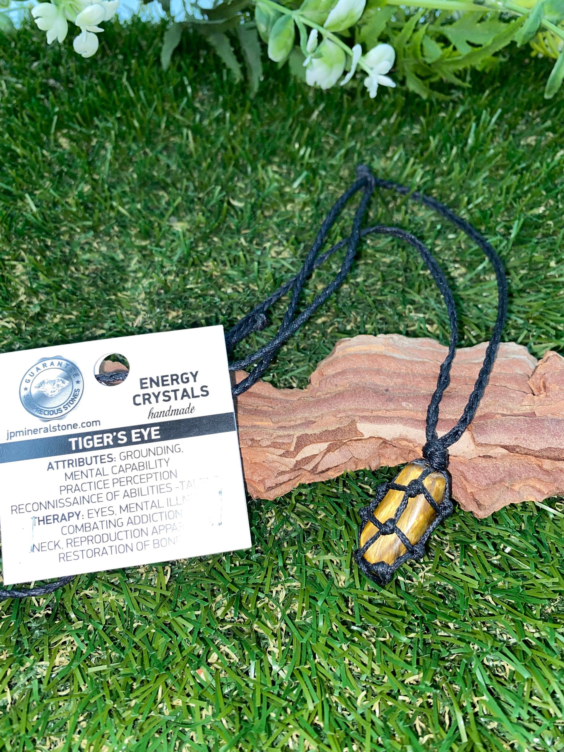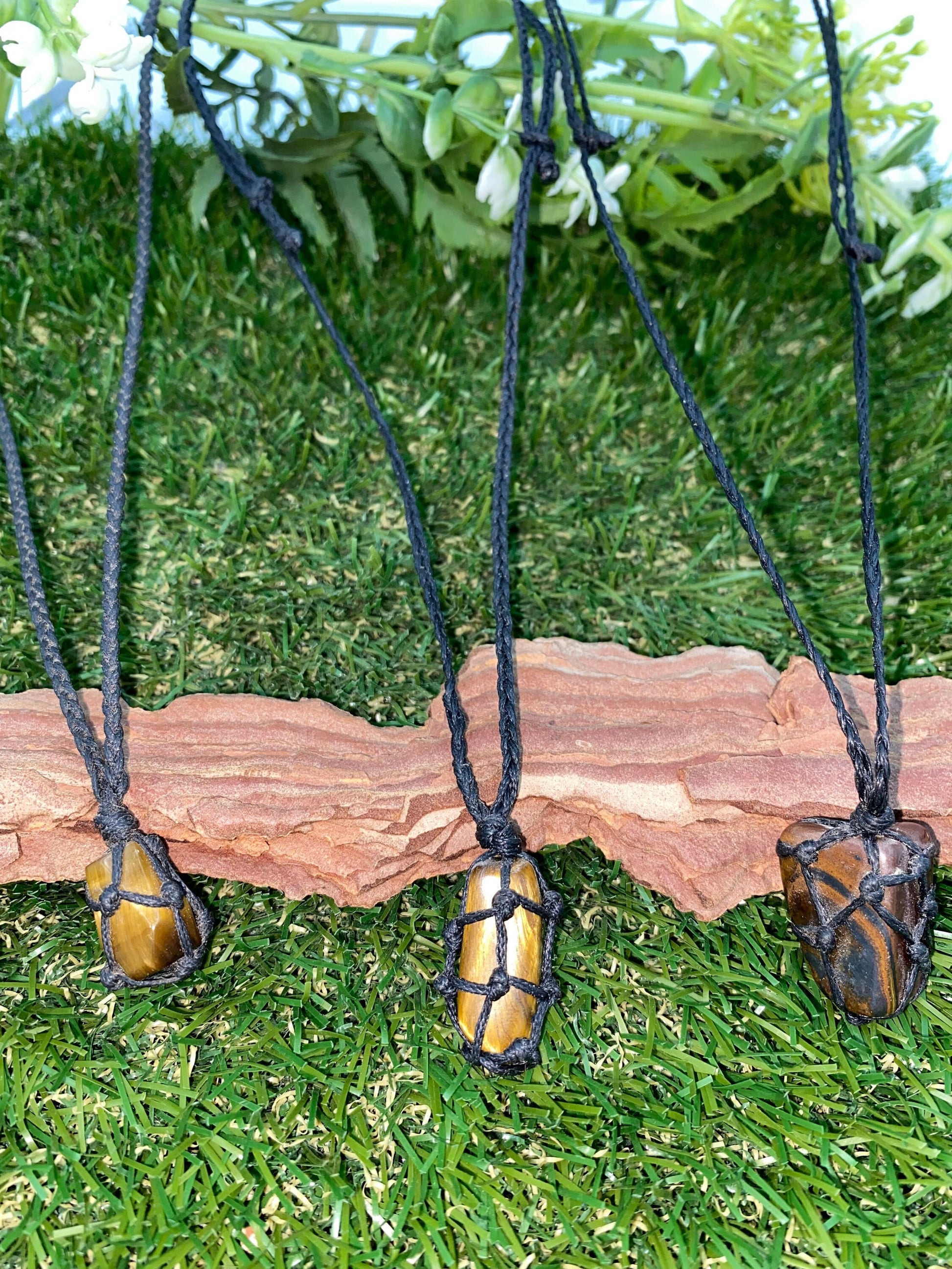 Tigerauge, polierter Mineralstein, brasilianischer Kristall, Heilung, Makramee, umwickelte Halskette, Schutz, Geschenk, Zubehör