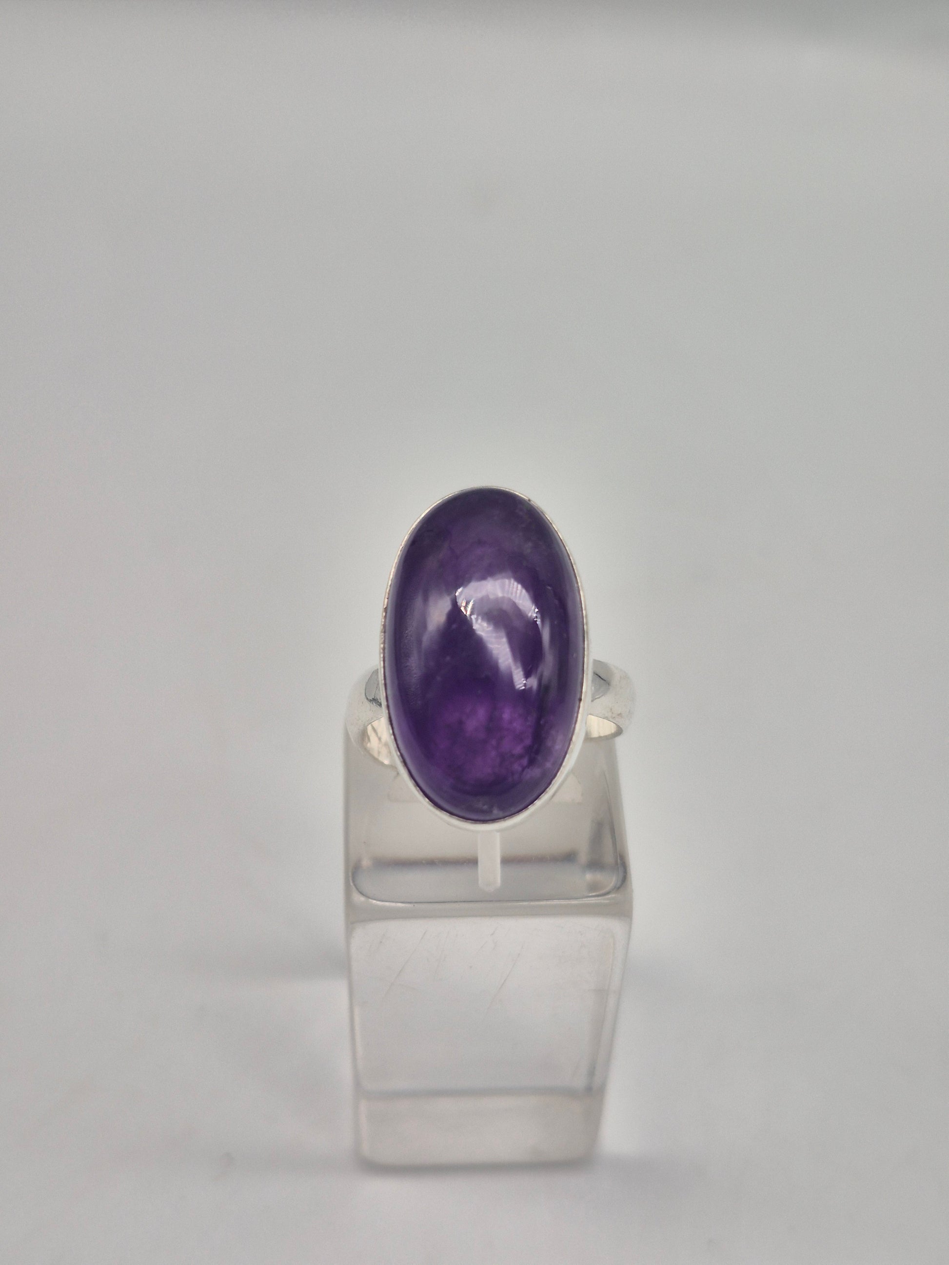 Amethyst Adjustable Ring – Silver Plated Cabochon - Purple Healing Crystal Jewelry
