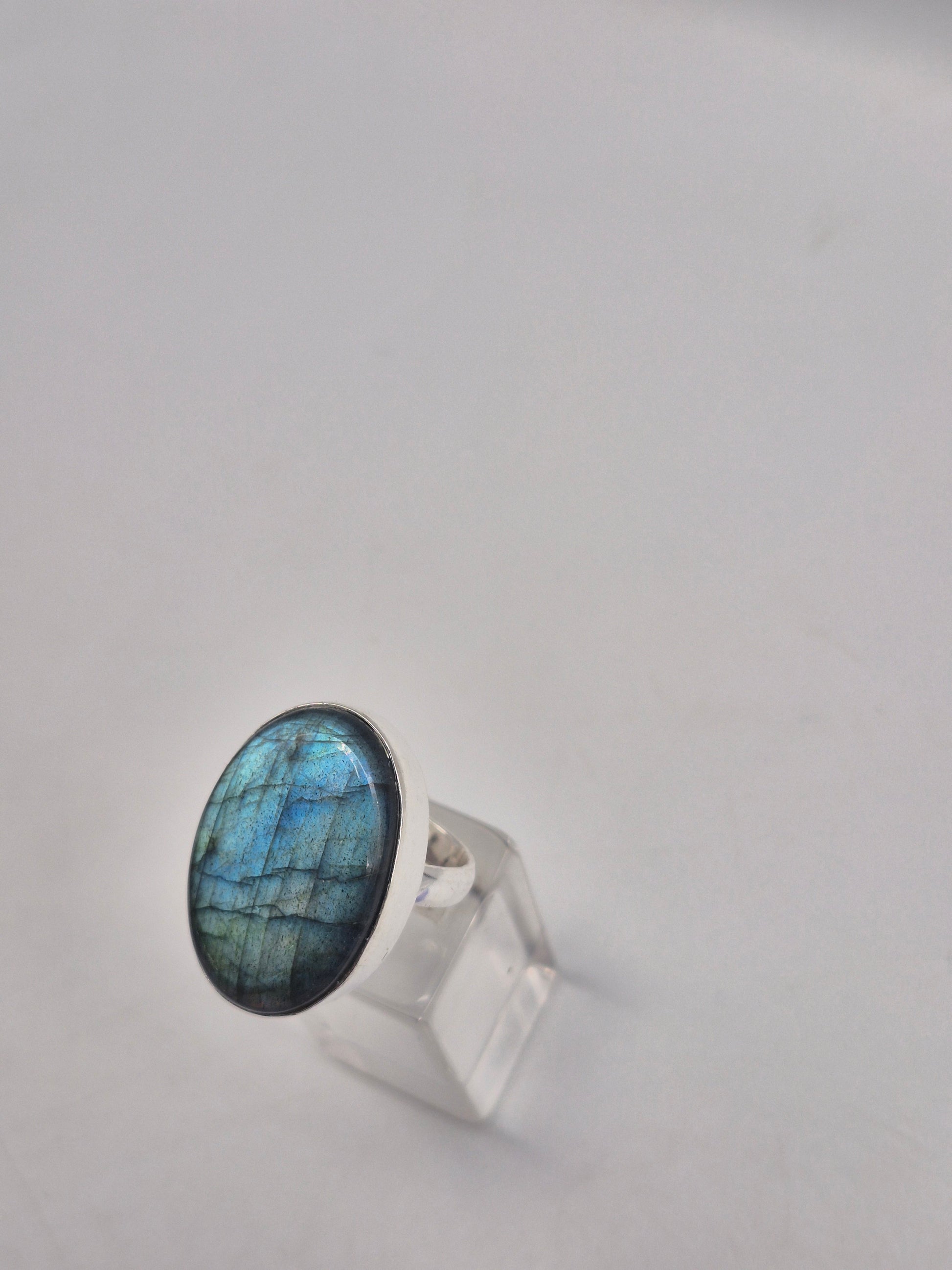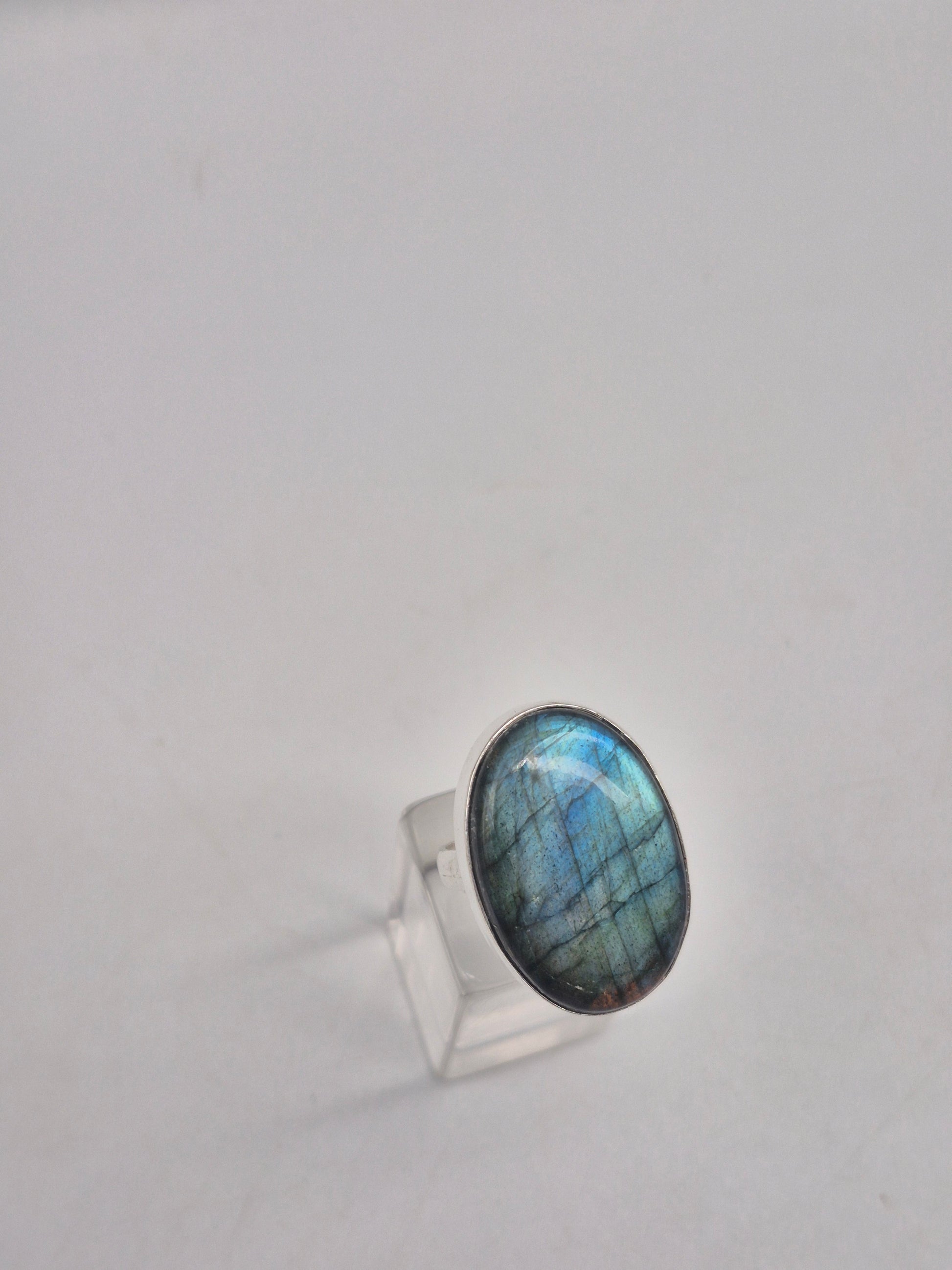 Labradorite Adjustable Ring – Silver Plated Cabochon - Iridescent Healing Crystal Jewelry