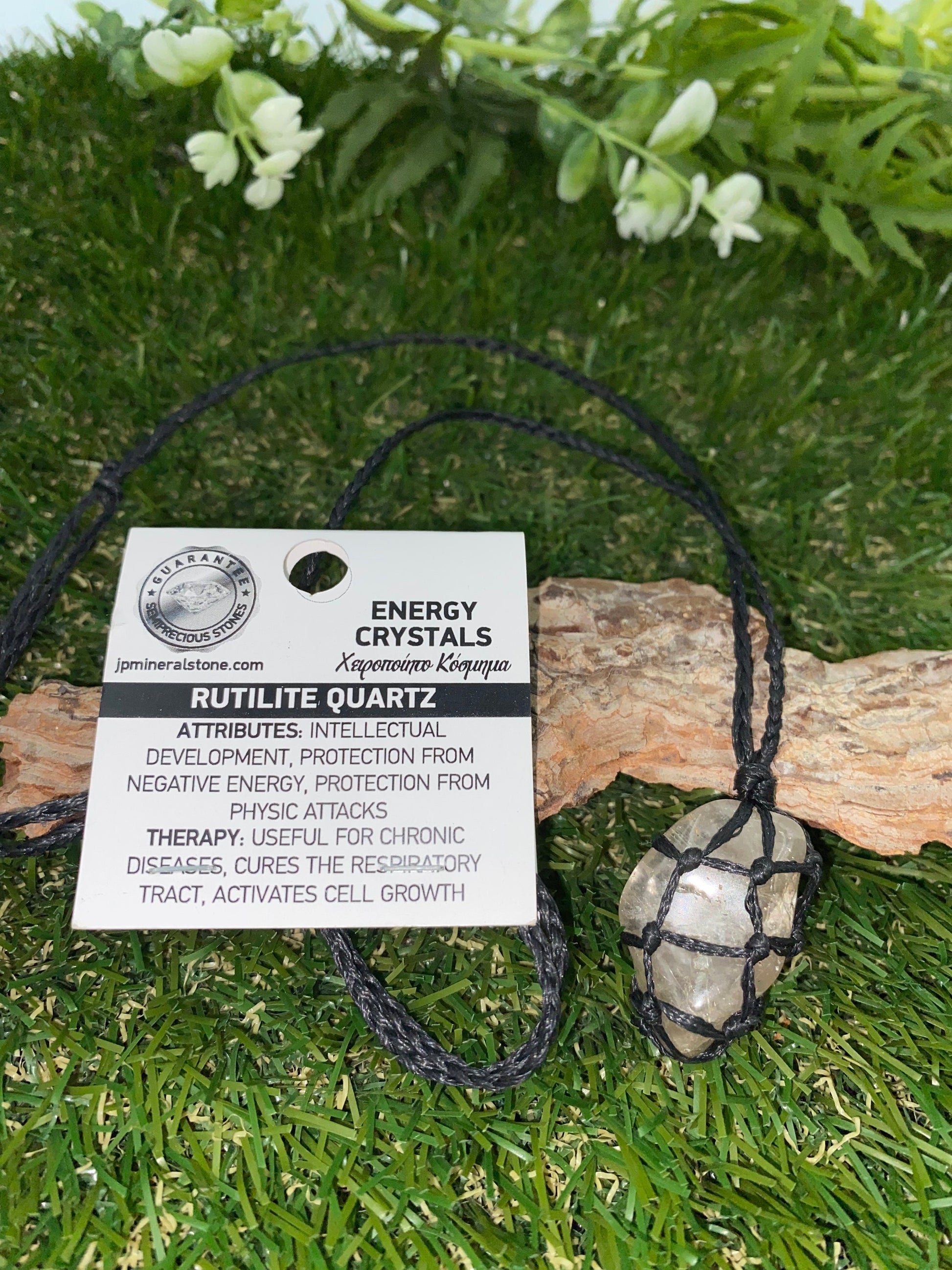 Χειροποίητο Περιδέραιο Μακραμέ Χειροποίητο Χαλαζία Φυσικού Γυαλισμένου Ρουτιλίου-Προστατευτικό Κολιέ-Zodiac