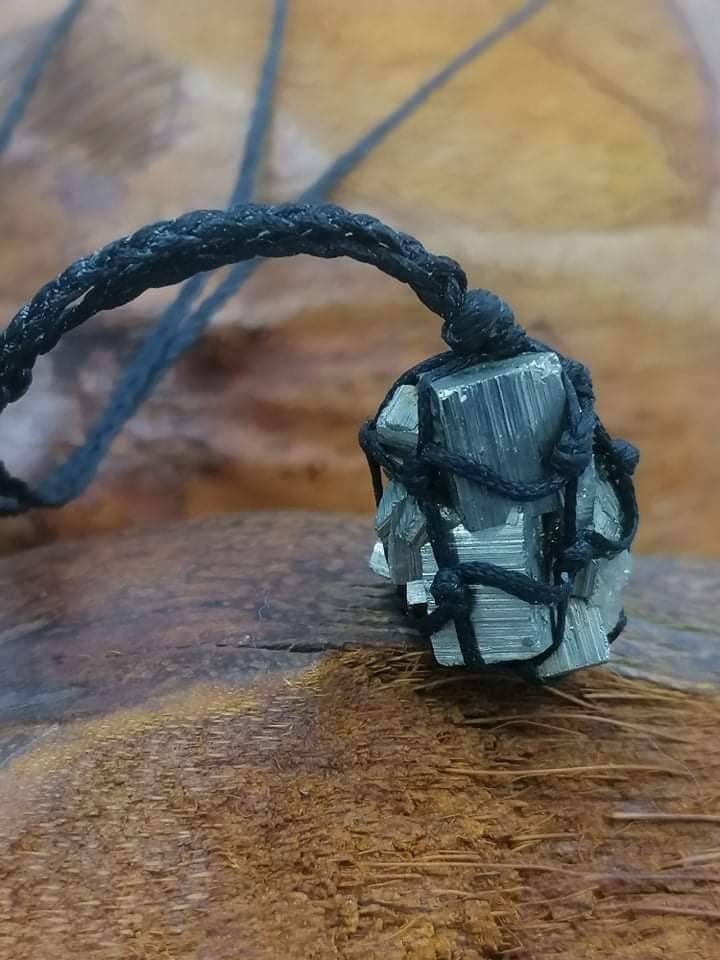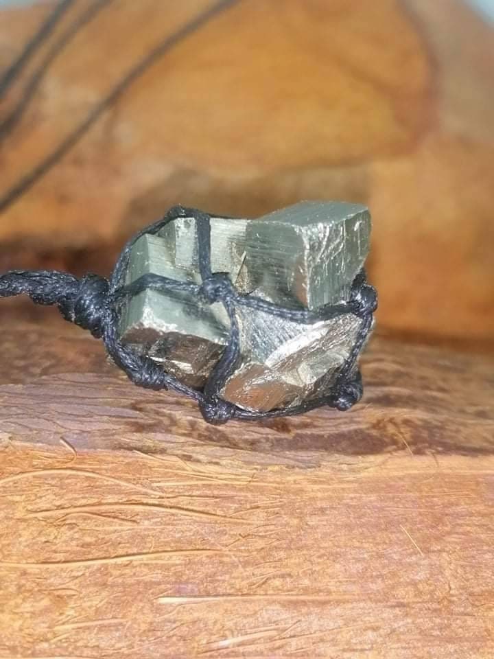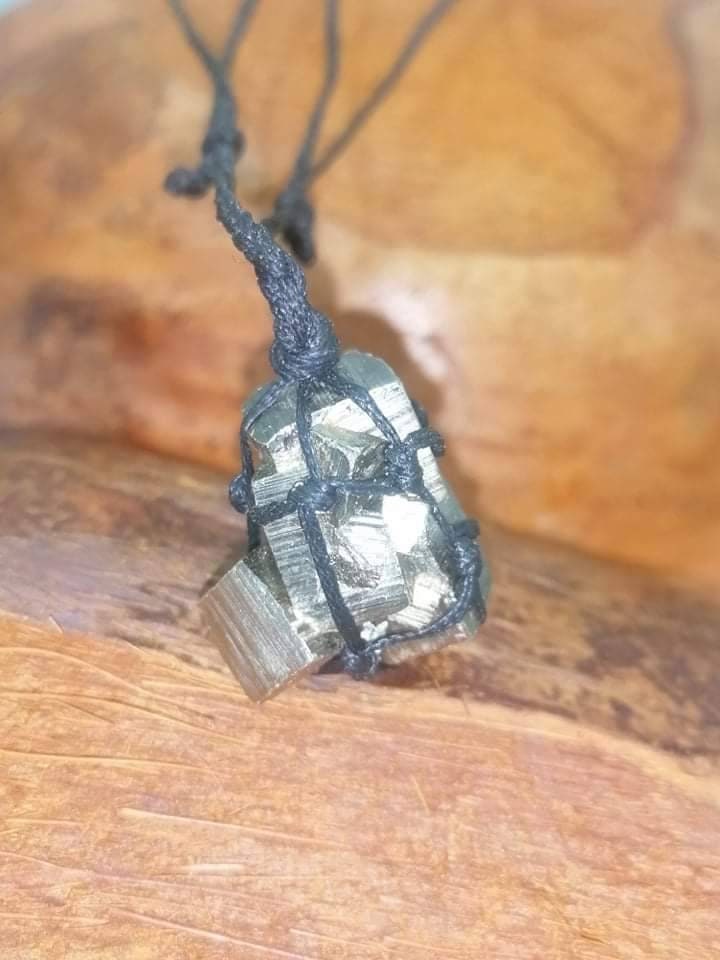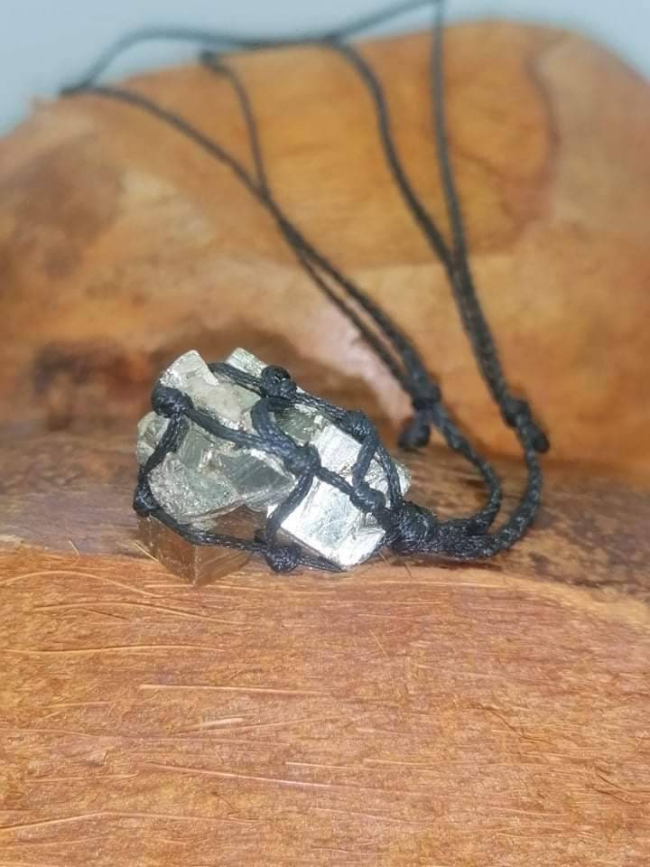 Φυσικός Πυρίτης με ειδικά cubs Χειροποίητο τυλιγμένο κολιέ μακραμέ - Θεραπευτική πέτρα - Ιδέα δώρου - Προστασία