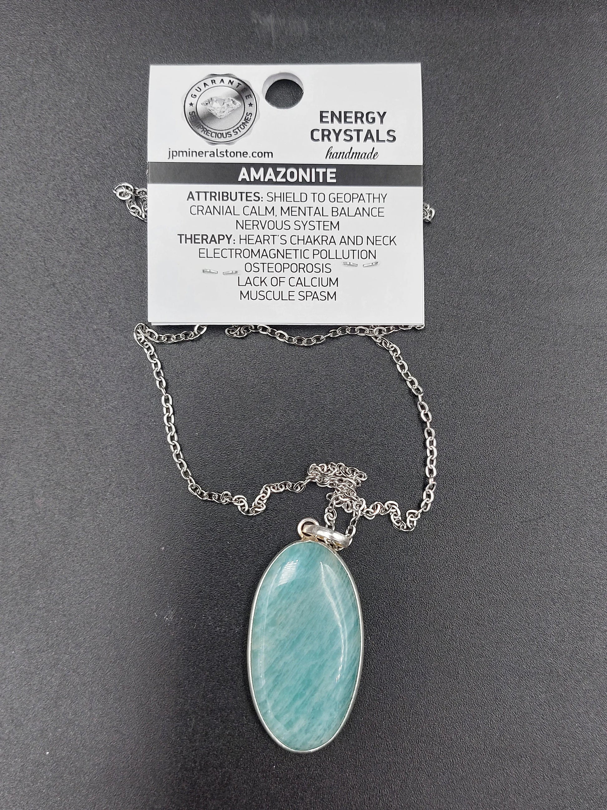 Luxury Amazonite pendant Cabochon Cut polished mineral stone.