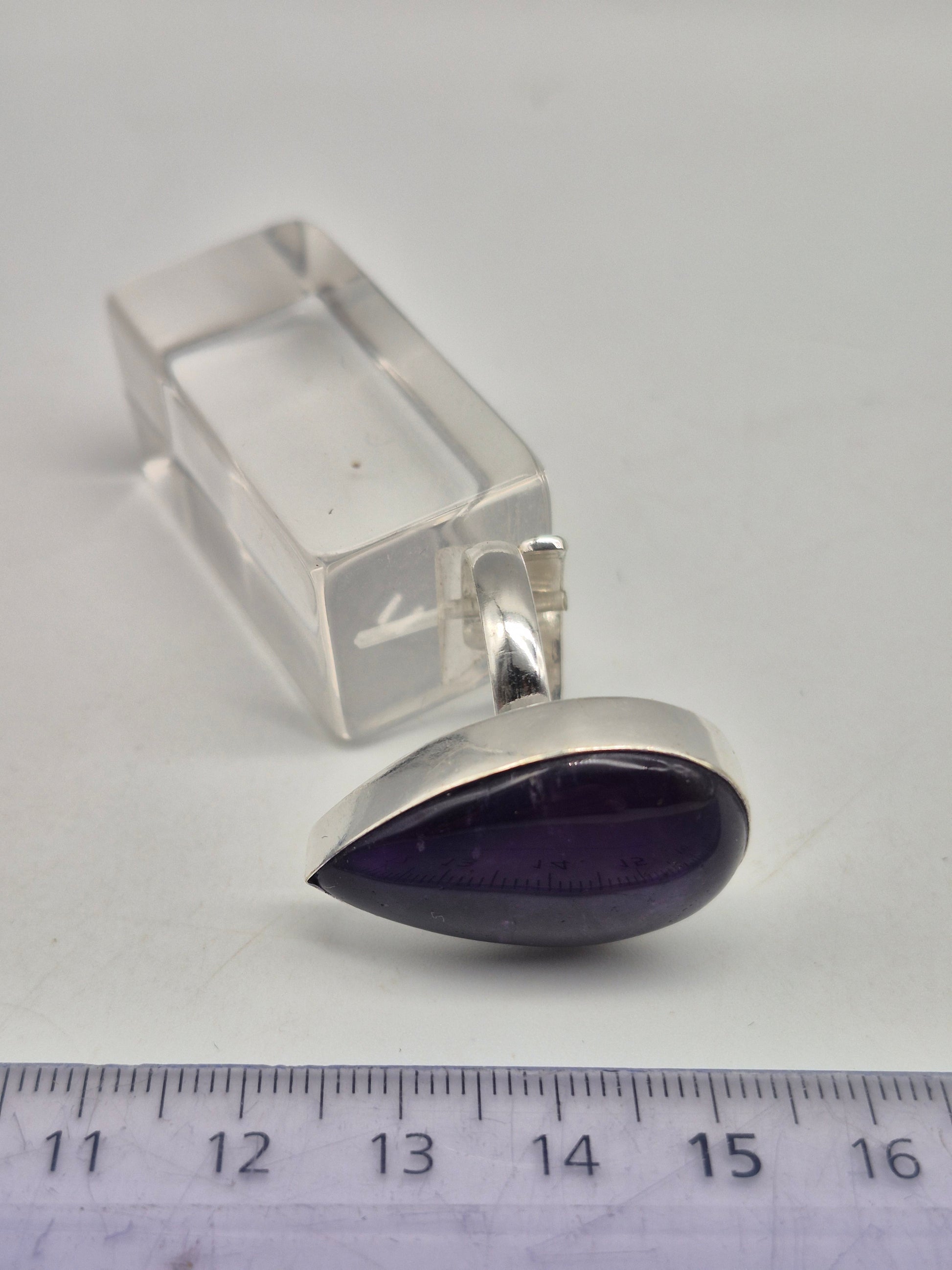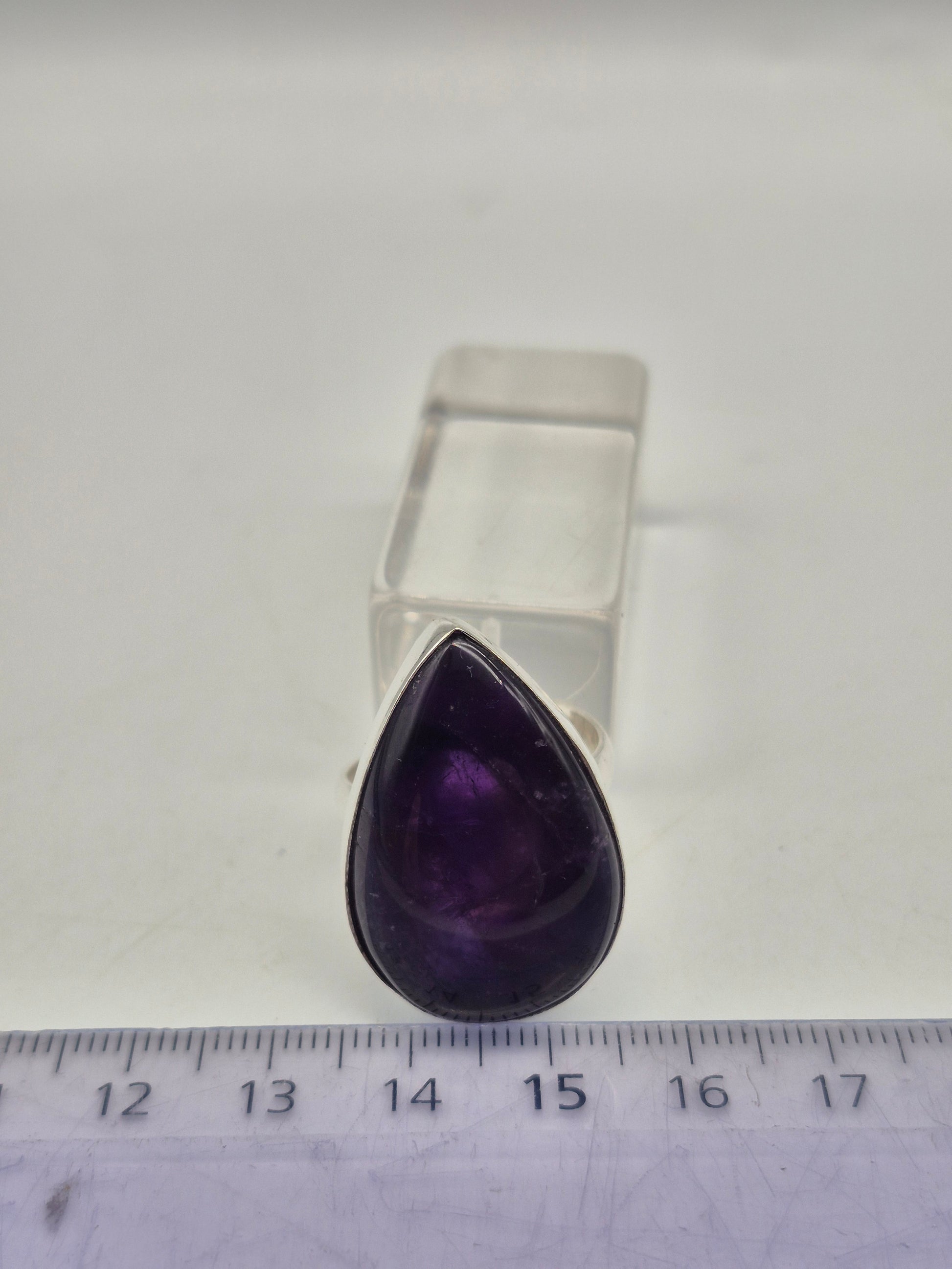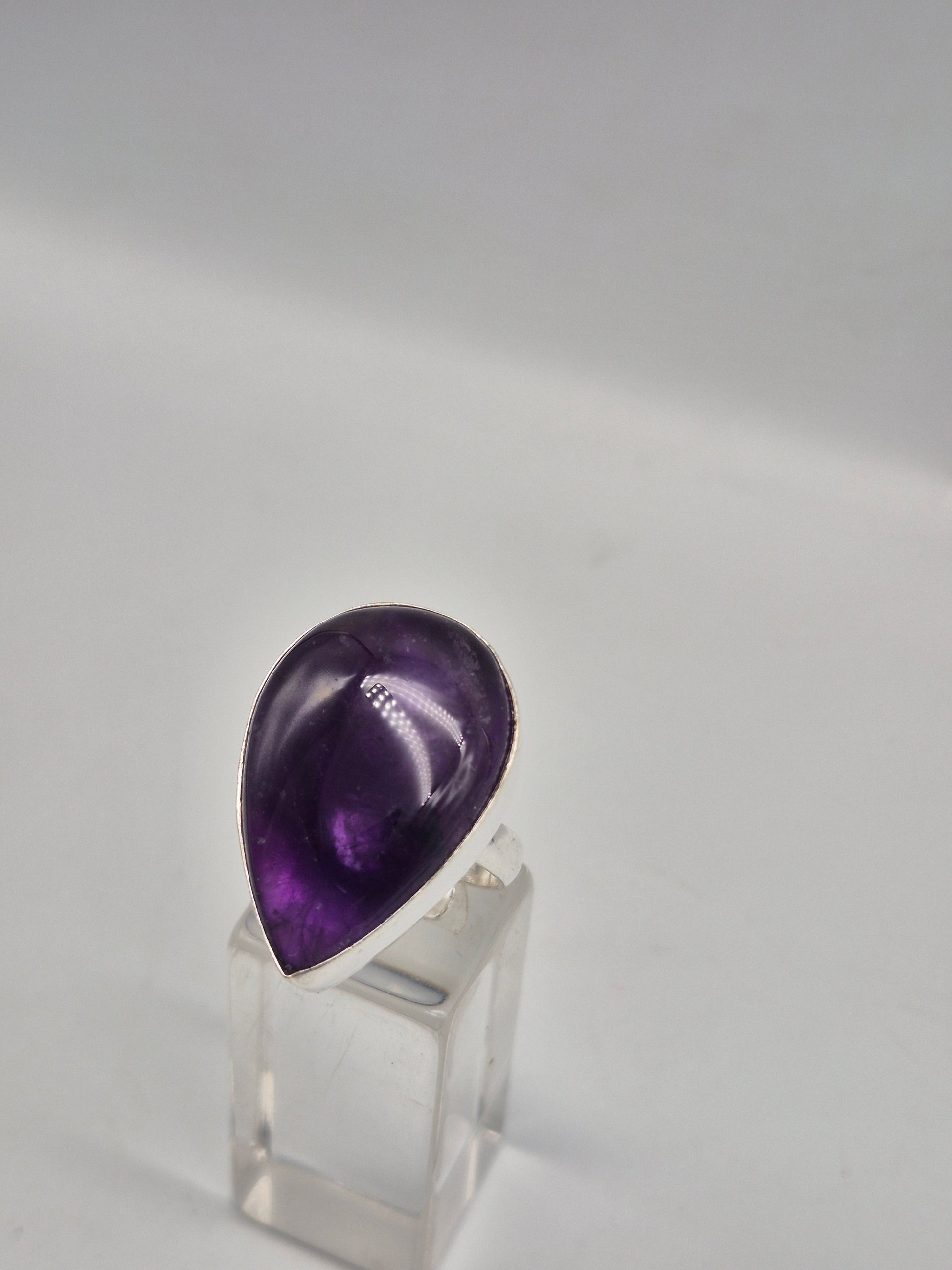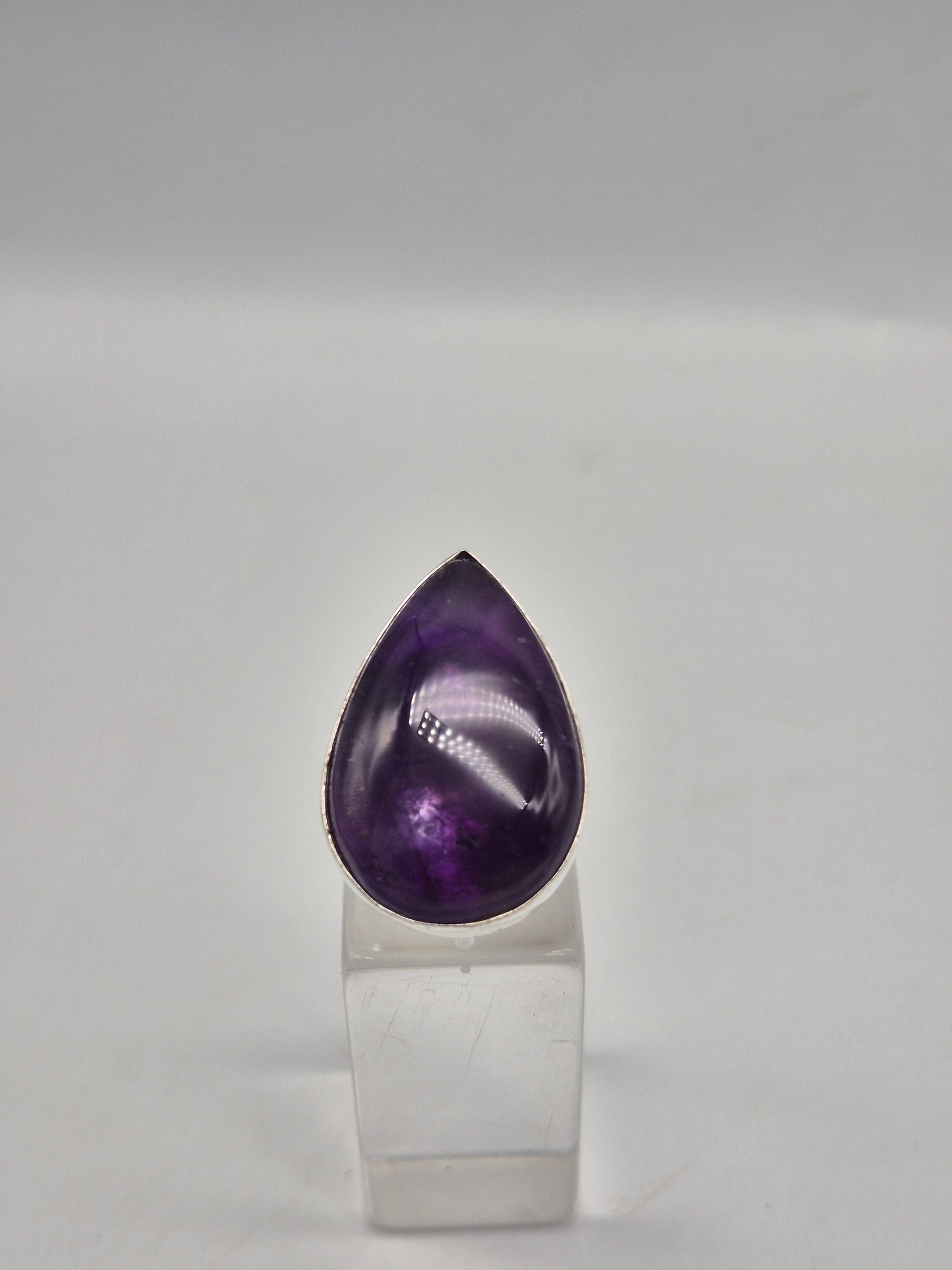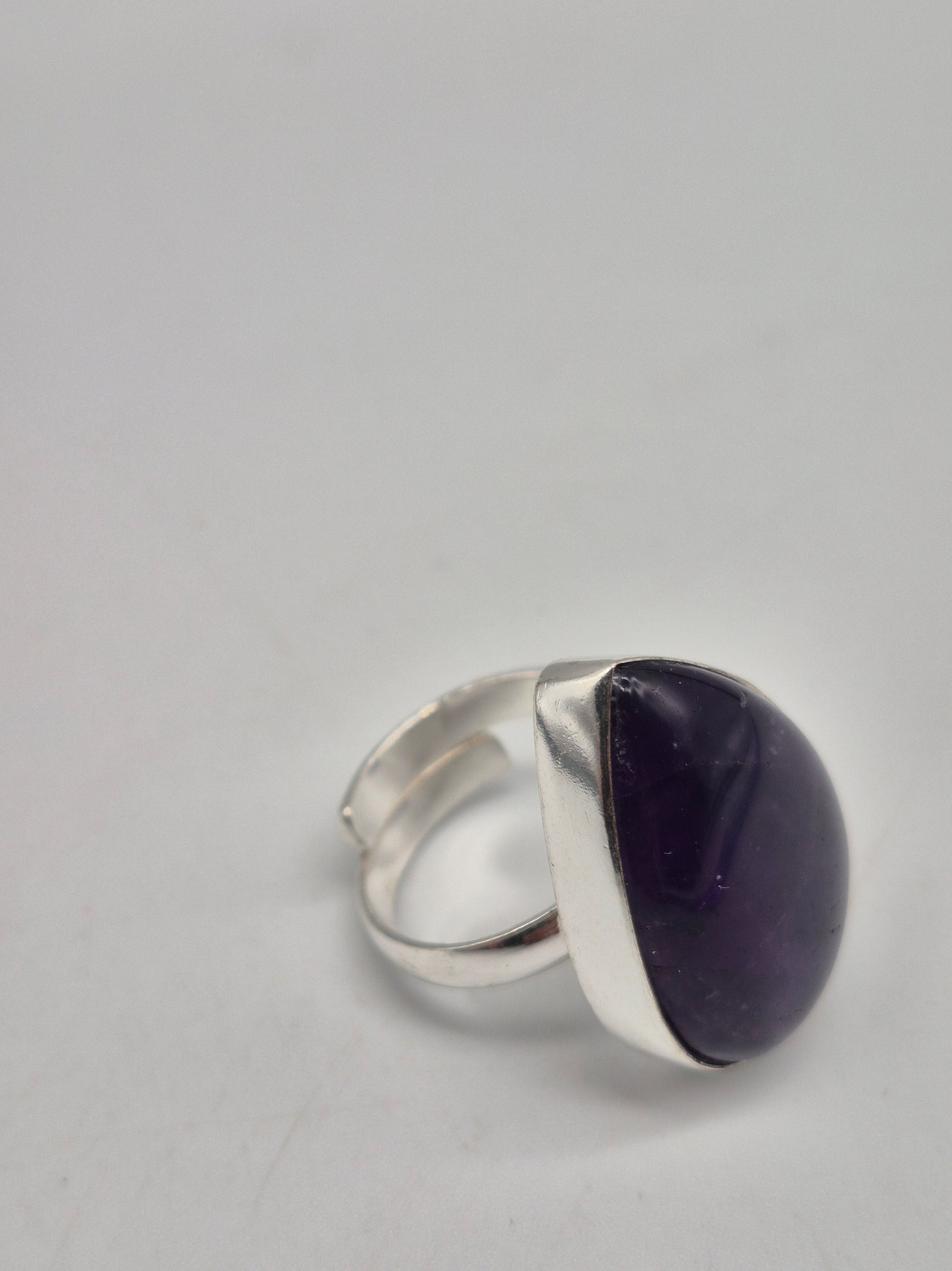 Amethyst Adjustable Ring – Silver Plated Cabochon - Purple Healing Crystal Jewelry