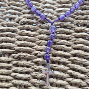 Amethyst Rosary Necklace – Purple Gemstone Prayer Beads