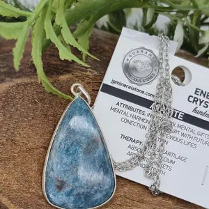 Embrace the vibrant energy of this beautiful Apatite pendant necklace. The striking, natural Apatite stone is set in a sleek silver bezel, showcasing its captivating blue or teal hues that shimmer with depth. Apatite is known for its energizing properties, helping to stimulate the intellect, enhance creativity, and boost motivation. It is believed to encourage personal growth, clear communication, and emotional balance.