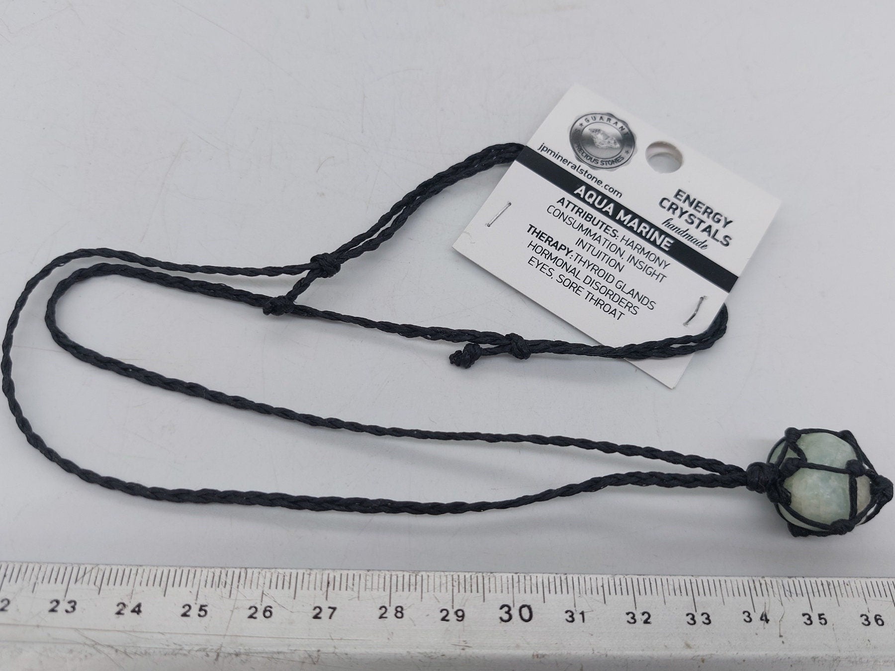 Crystal Aqua Marine Macrame Wrapped Necklace