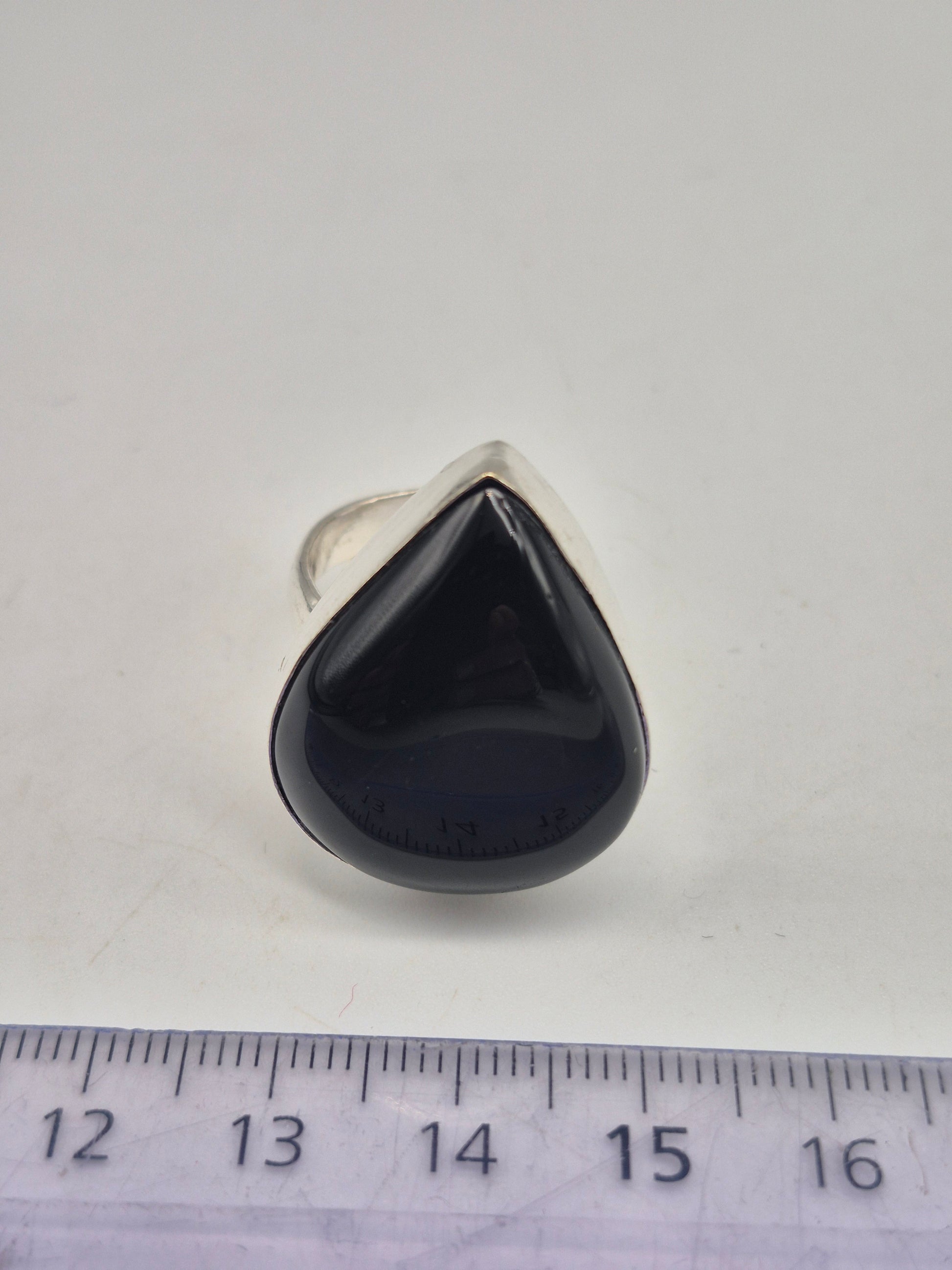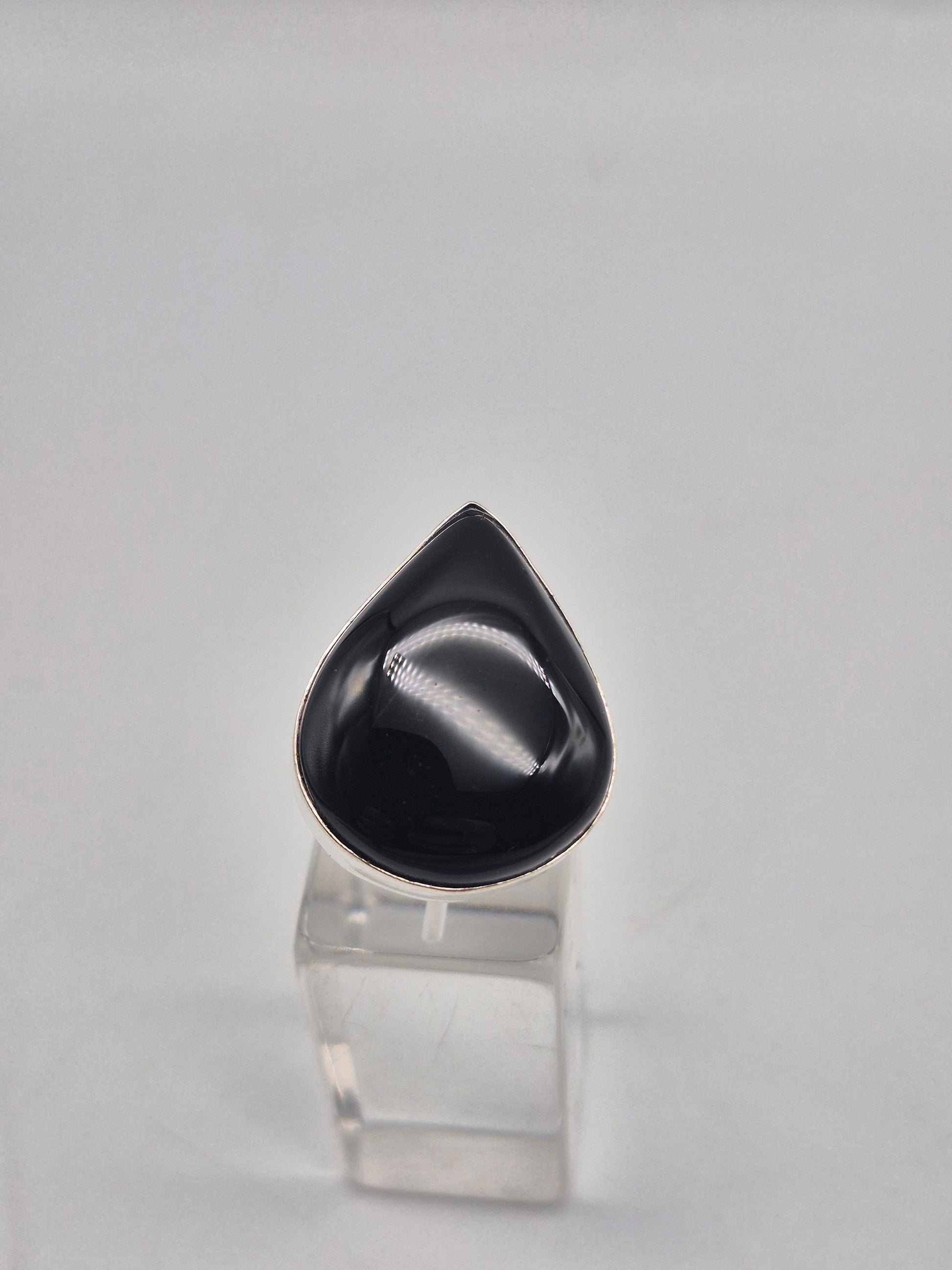 Black Obsidian Adjustable Ring – Silver Plated Cabochon Protection Crystal Jewelry