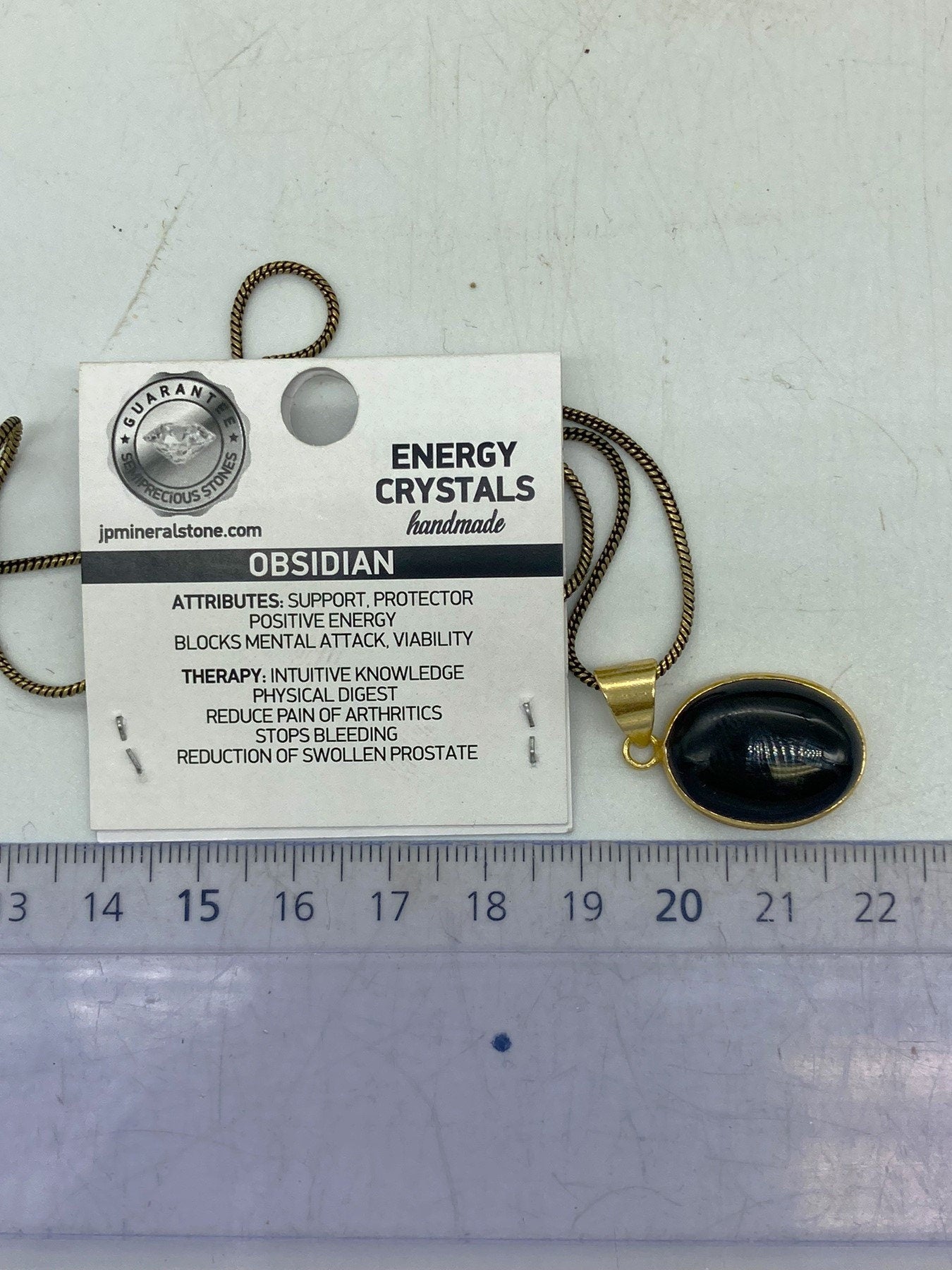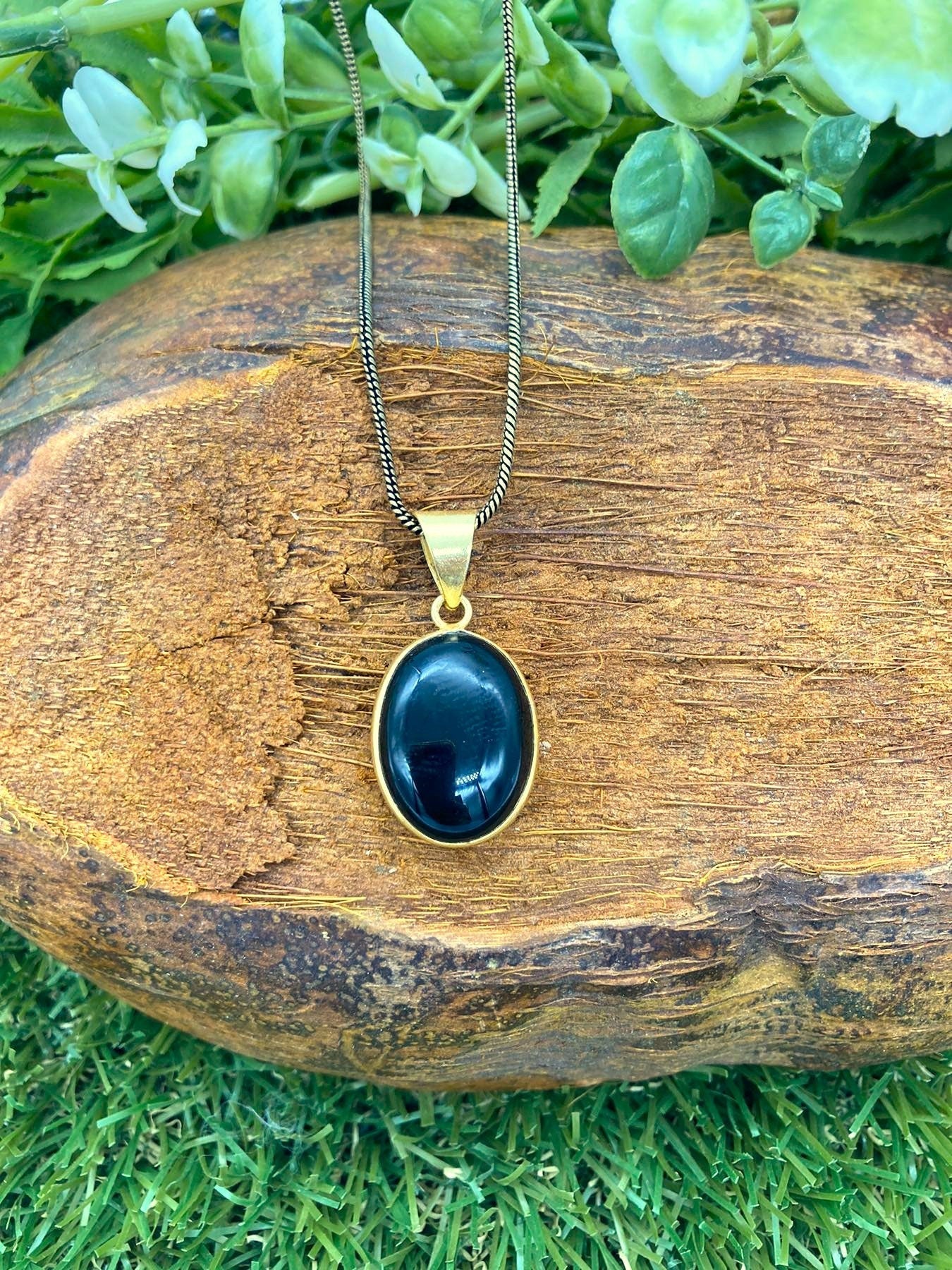 Black Obsidian Brass Pendant Cabochon Cut Healing Crystal