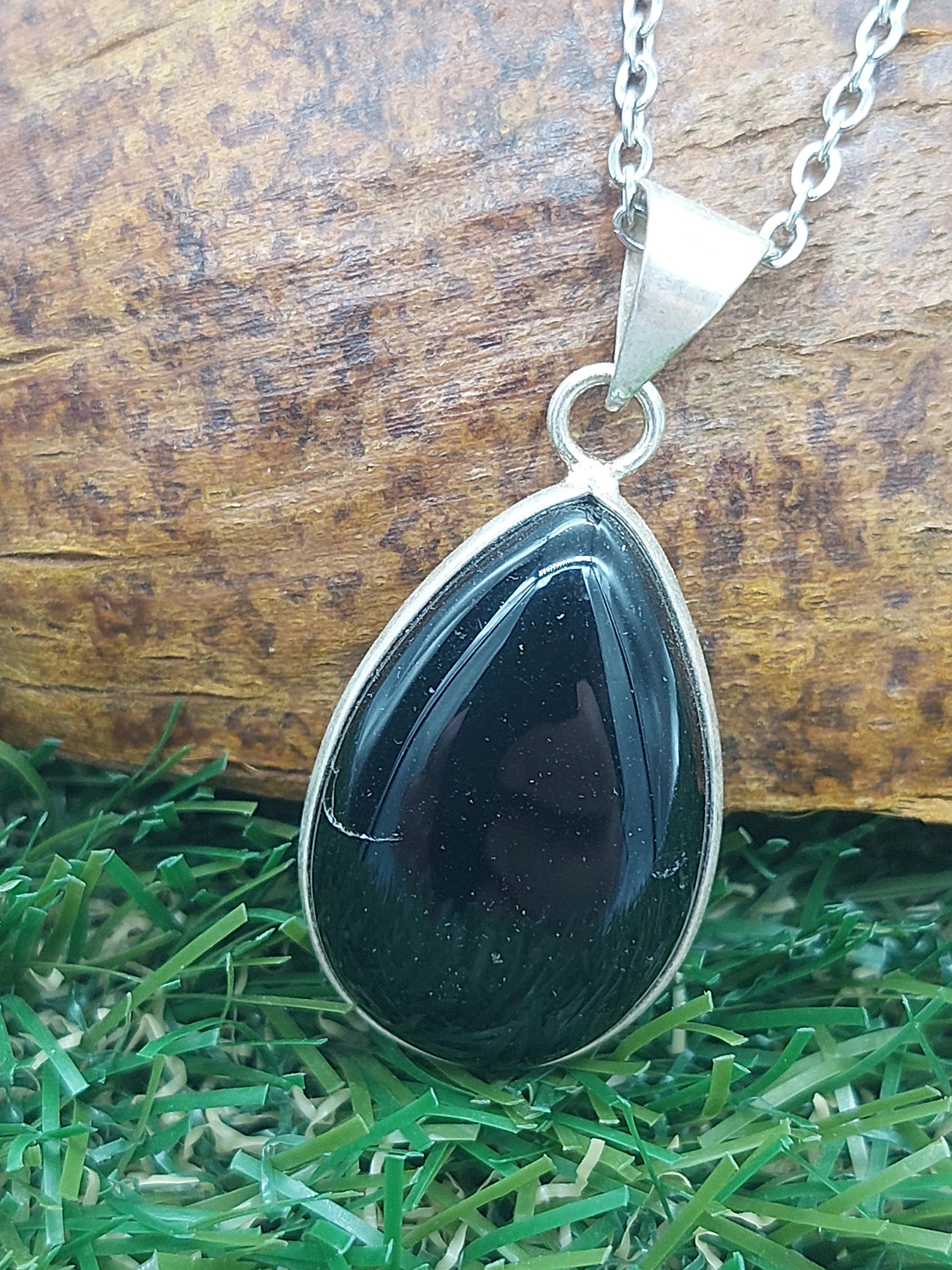 Black Obsidian Silver Plated Pendant Cabochon Cut Healing Crystal