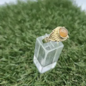 Radiate confidence and passion with this stunning Carnelian brass ring. Featuring a vibrant orange carnelian gemstone set in a warm, antique-style adjustable brass band, this piece brings bold energy and natural beauty to your everyday look.
