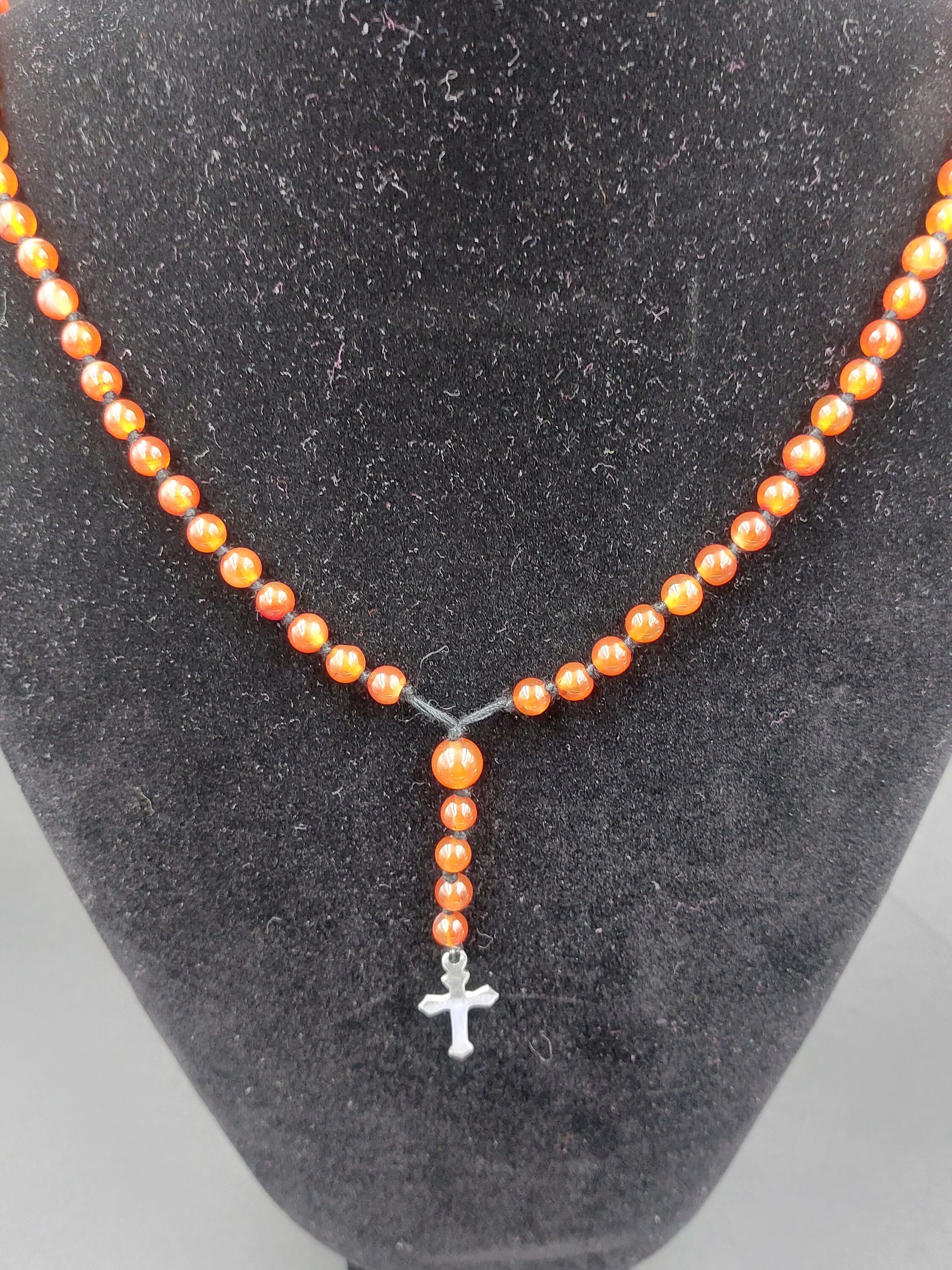 Carnelian Crystal Rosary Beads with 925 Sterling Silver Medal Cross Piece