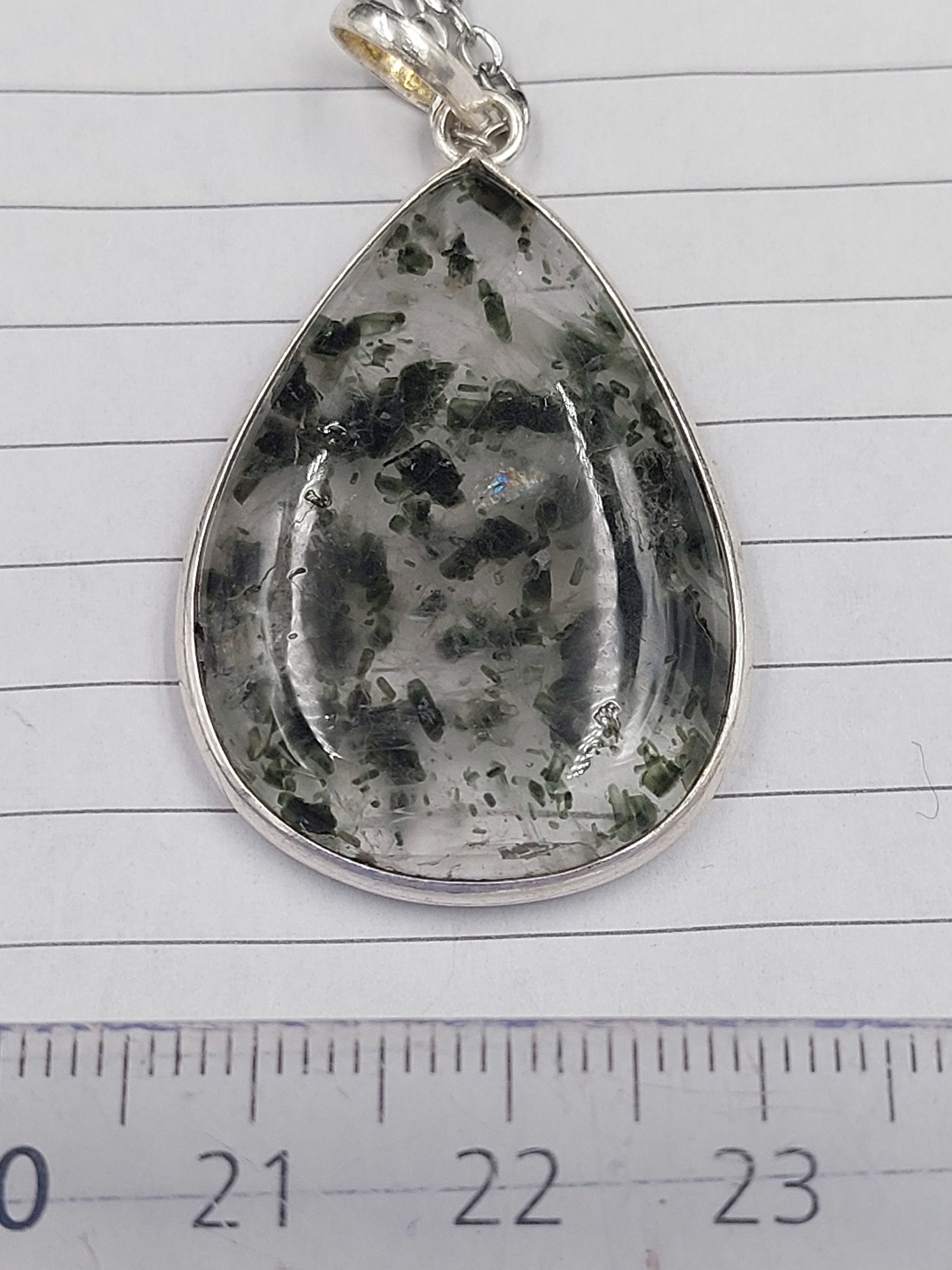 Clear Quartz with Black Tourmaline Inclusions Necklace Silver 925