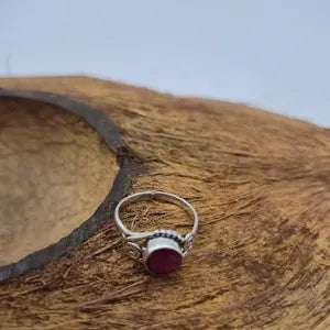 Embrace elegance, passion, and inner strength with this faceted ruby ring. Featuring a heat-treated ruby gemstone set on a silver-plated adjustable band, this ring combines timeless beauty with effortless comfort. Its rich red hue sparkles in every light, making it perfect for everyday wear or special occasions.