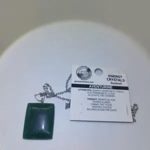 Material: Green Aventurine stone pendant, choice of sterling silver or gold-plated chain