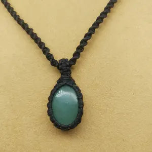 Green Aventurine Macrame Necklace, Lucky Crystal Wrapped Necklace, Green Stone Necklace