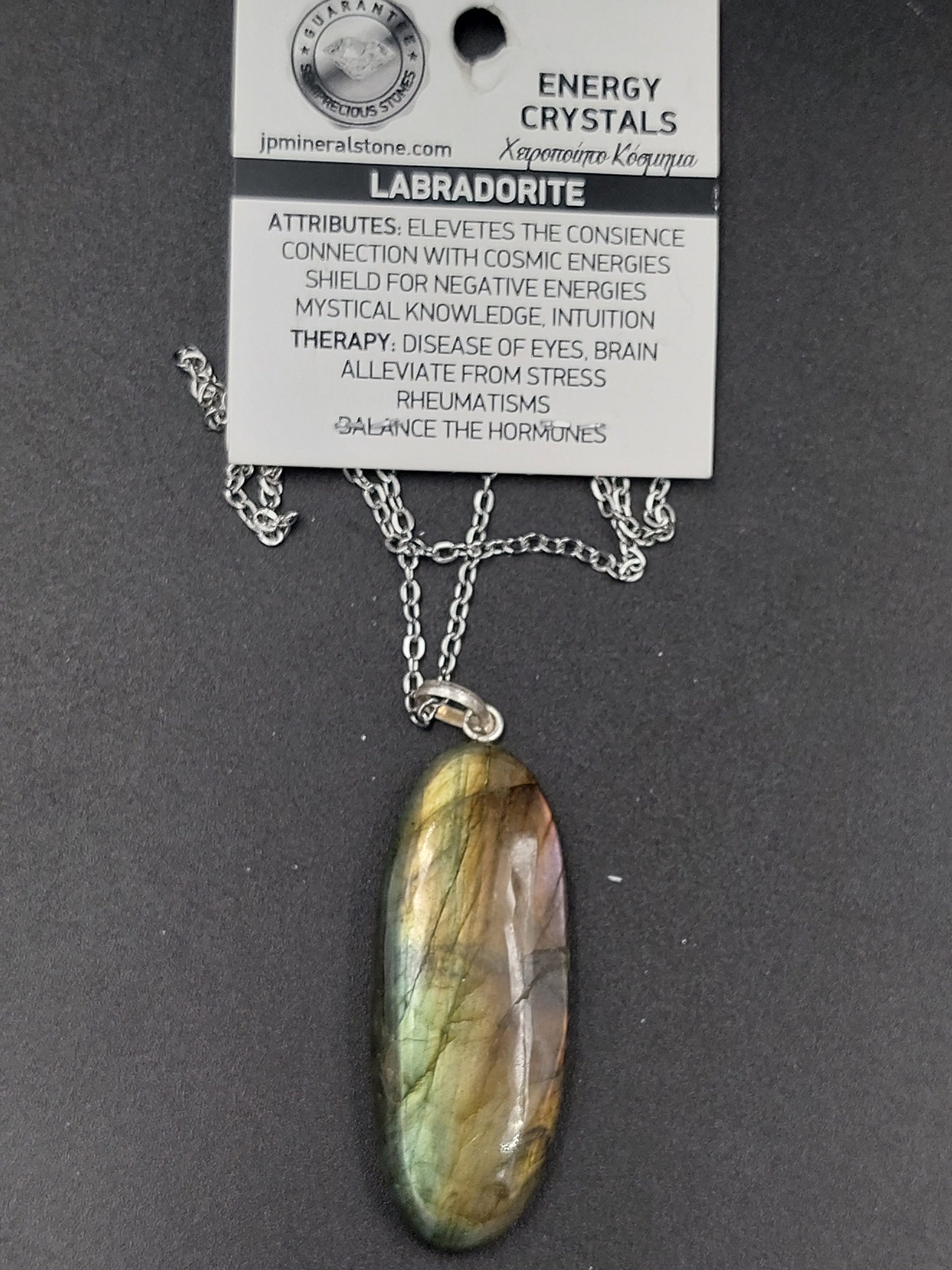 Labradorite Crystal Necklace Silver Plated