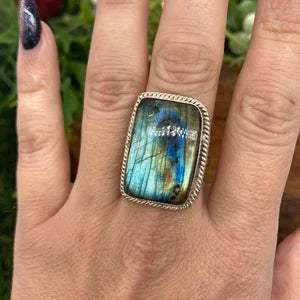 Labradorite Crystal Silver Plated Adjustable Statement Ring