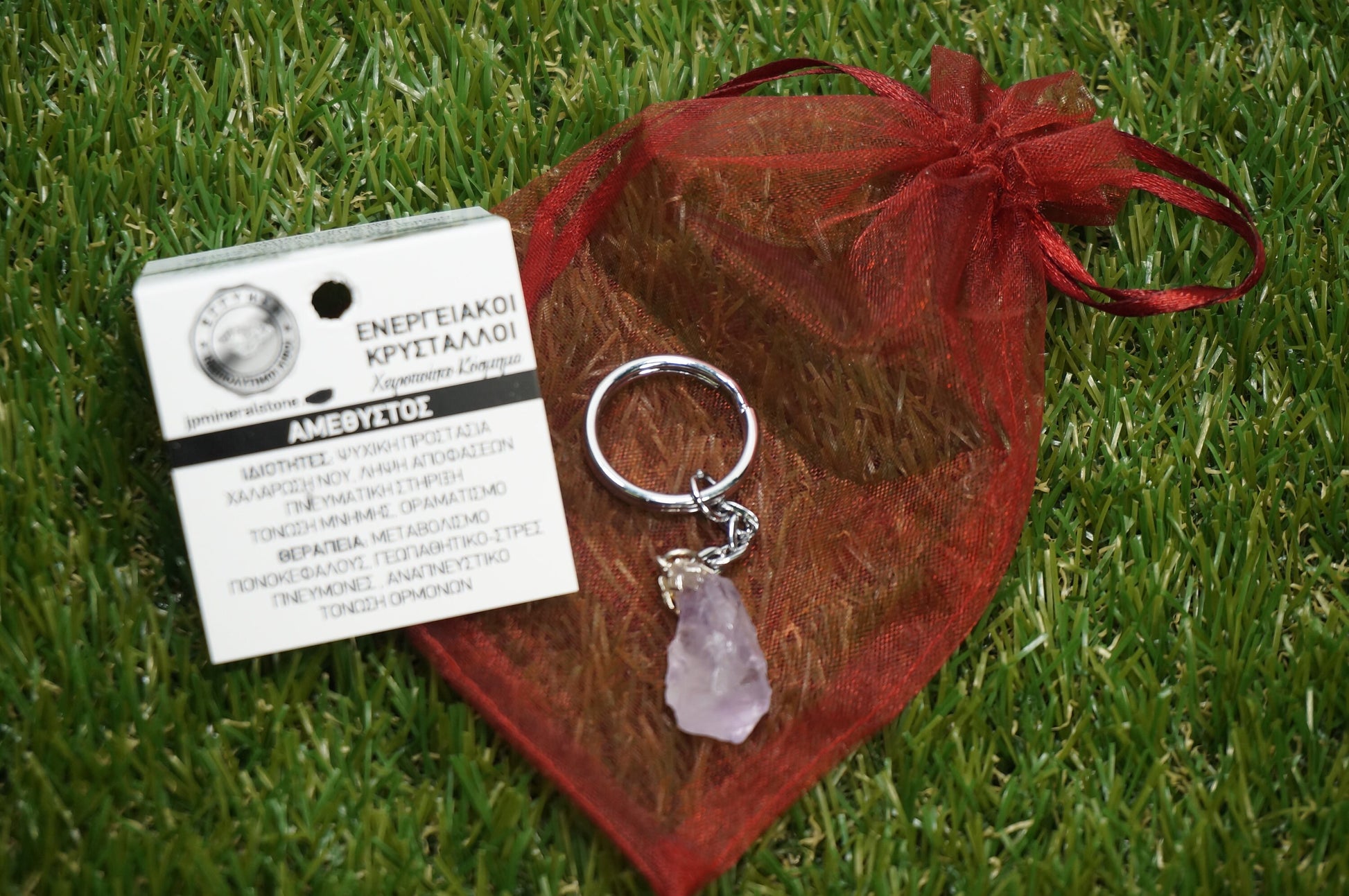 Description of keychain: accessories of silver metal colour chain and silver plated metal in the stone.