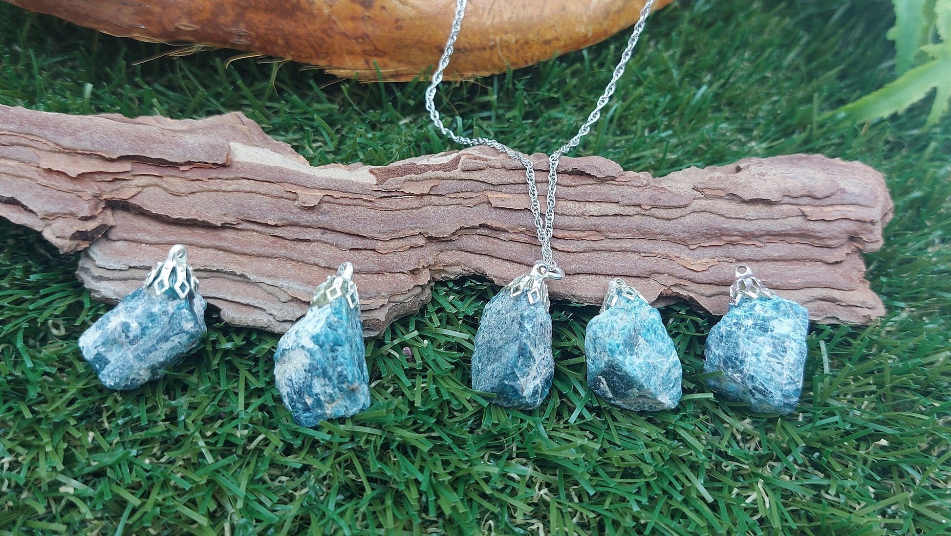 Natural Apatite Sterling Steel Necklace Healing Crystal Accessories Zodiac Mineral Stone
