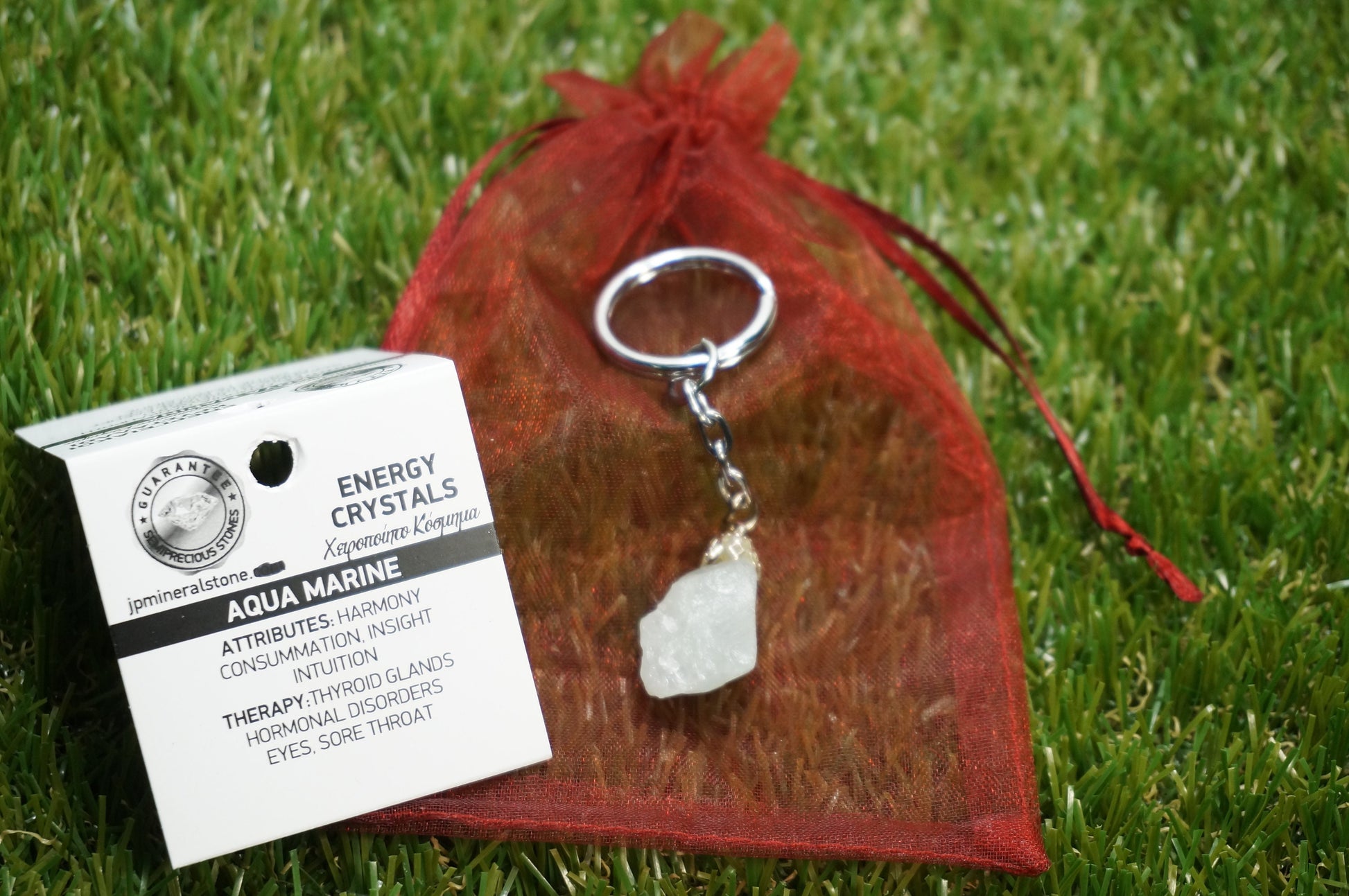 Description of keychain: accessories of silver metal colour chain and silver plated metal in the stone.