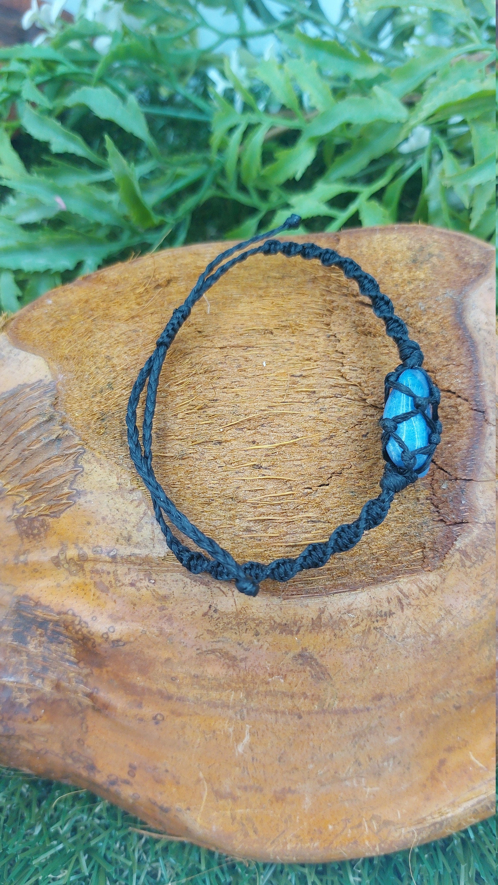 Natural Blue Agate Handmade Wrap It Macrame Bracelet Healing Crystal Accessories Zodiac Mineral Stone