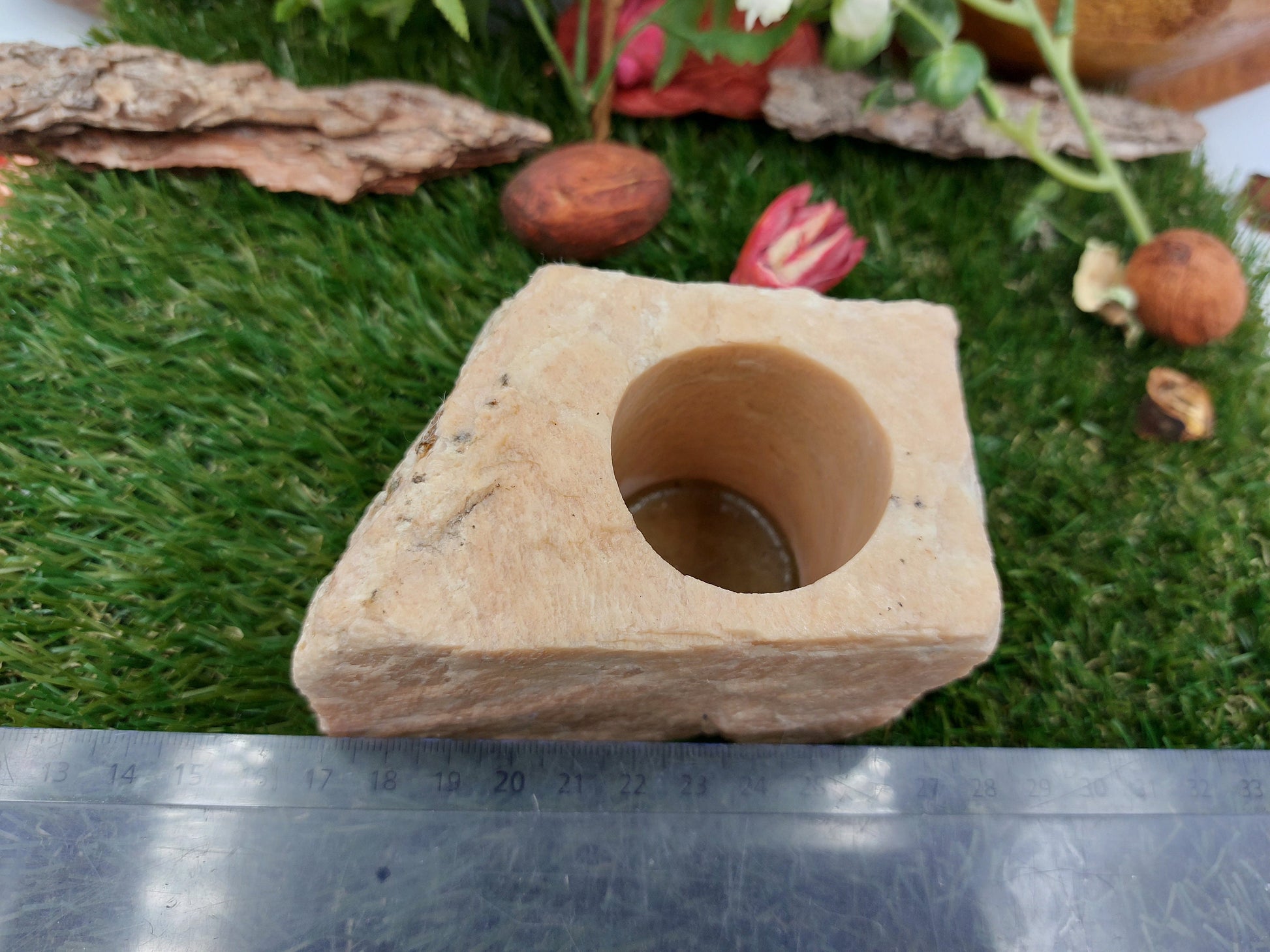 Natural Brown Jasper Candle Holder - Healing Crystal Zodiac Mineral Stone