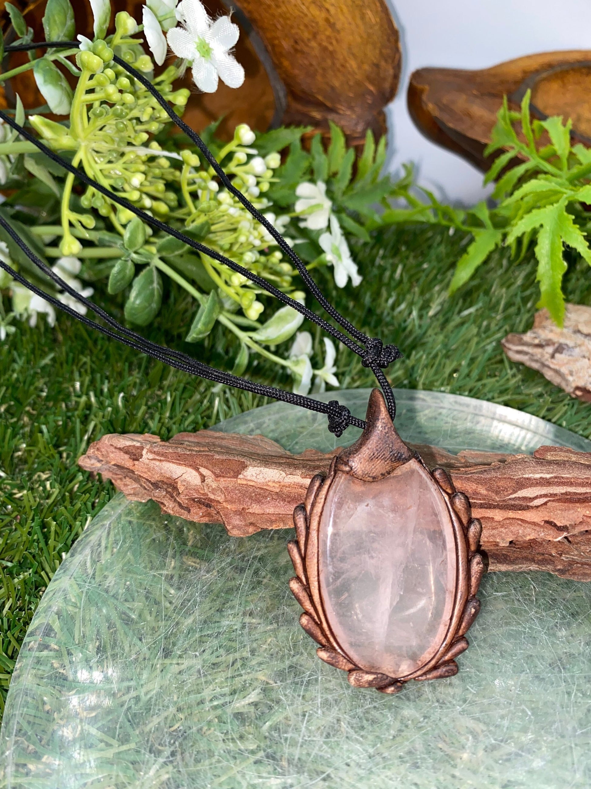 Natural Handmade Necklace- Cabochon Cut Pink Quartz Stone - Healing Stone - Gift Idea - Protection