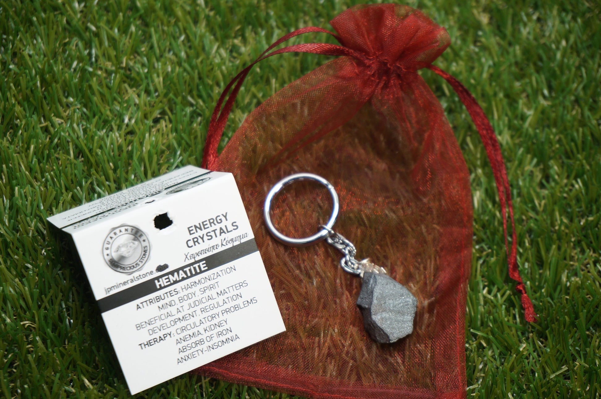 Natural hematite keychain rough mineral stone.