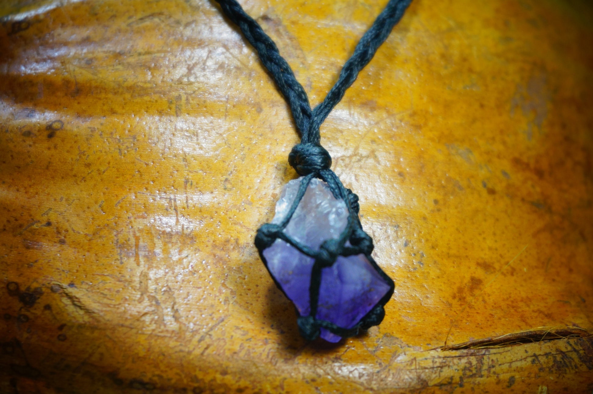 Natural Point Amethyst Crystal Makrame Wrapped Necklace Purple Gem Rough Mineral Healing Protection Stone Birthstone