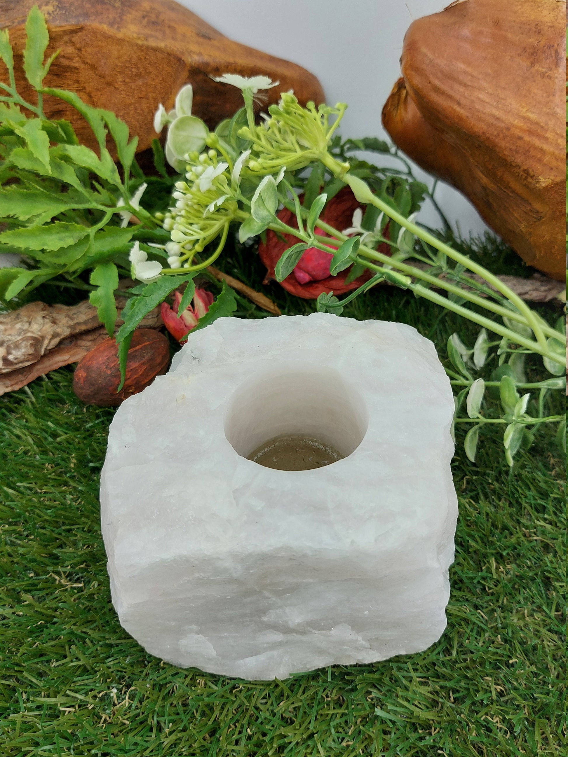 Natural Quartz CandleHolder - Healing Crystal Zodiac Mineral Stone