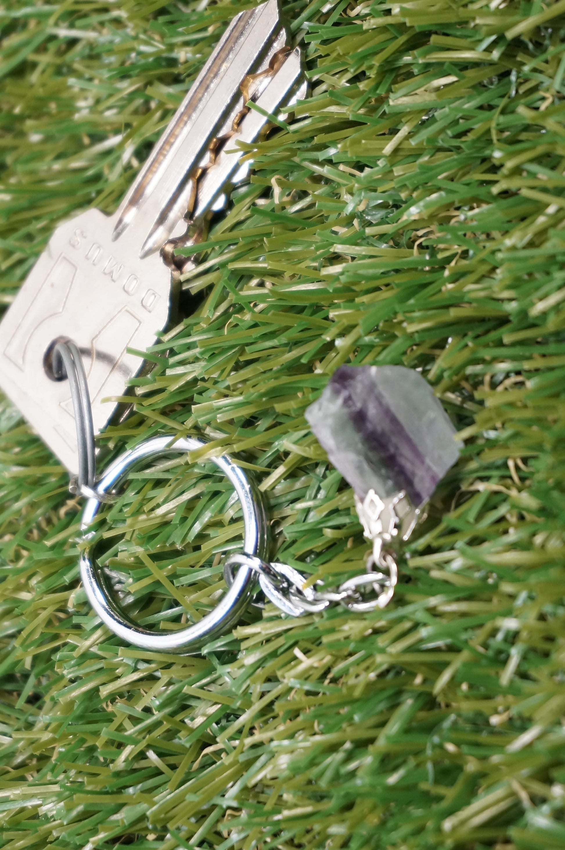 Description of keychain: accessories of silver metal colour chain and silver plated metal in the stone.