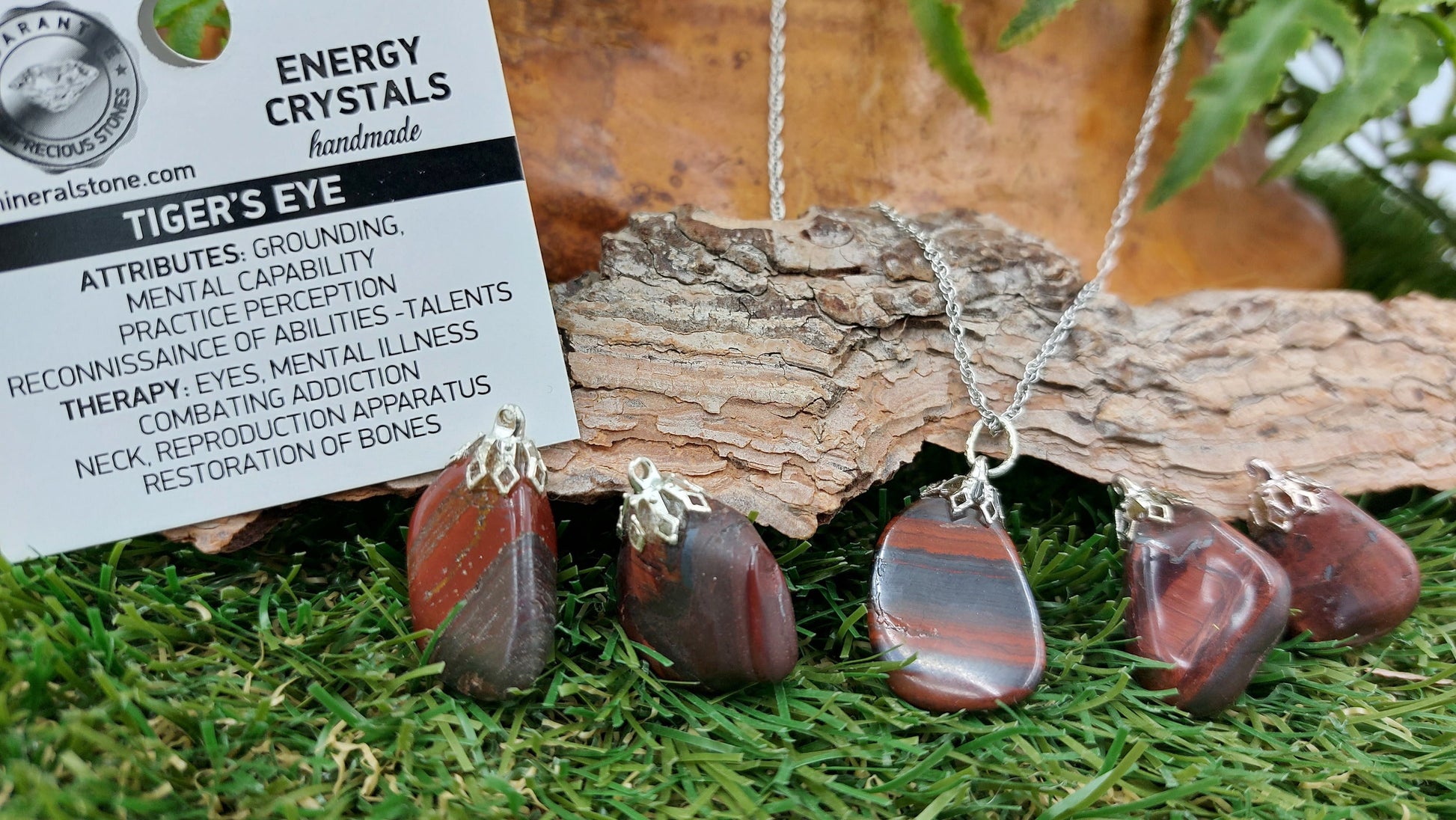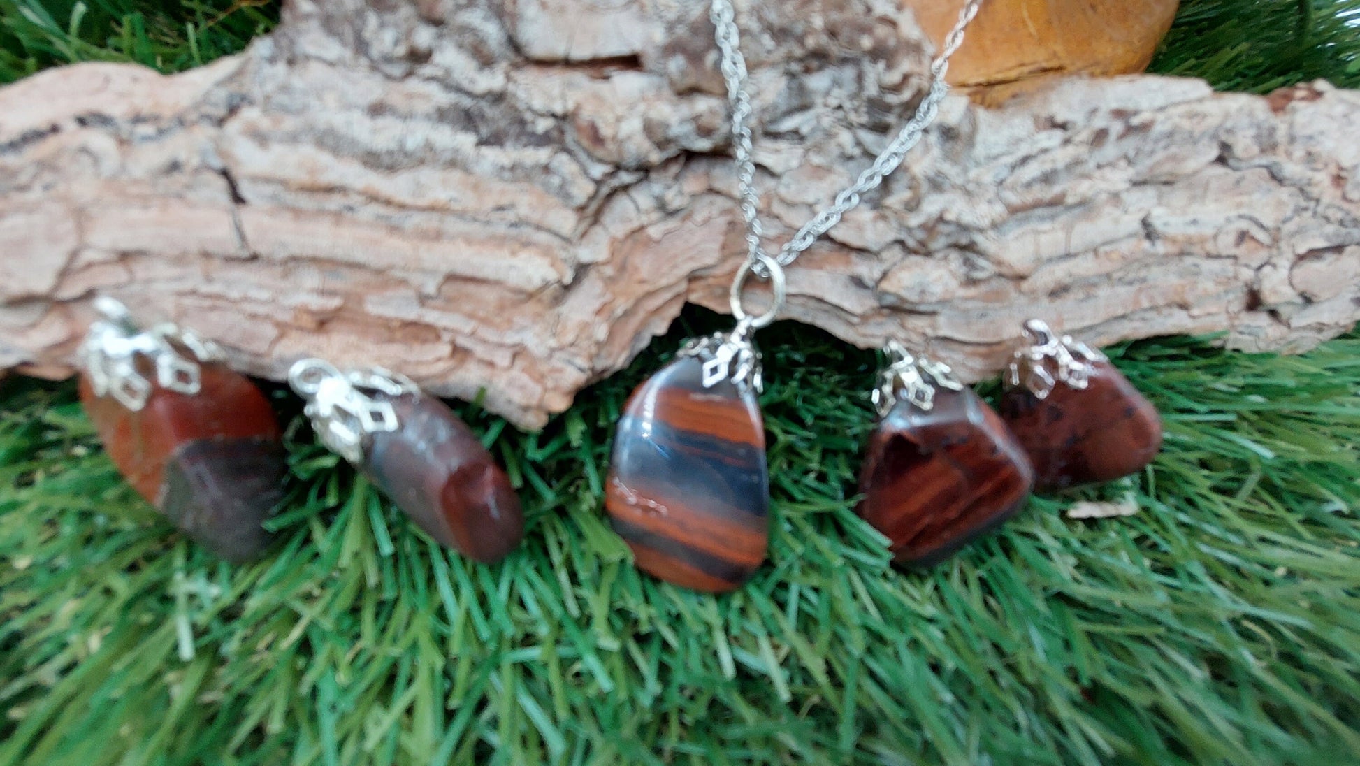 Natural Crystal Tiger's eye necklace polished mineral stone.