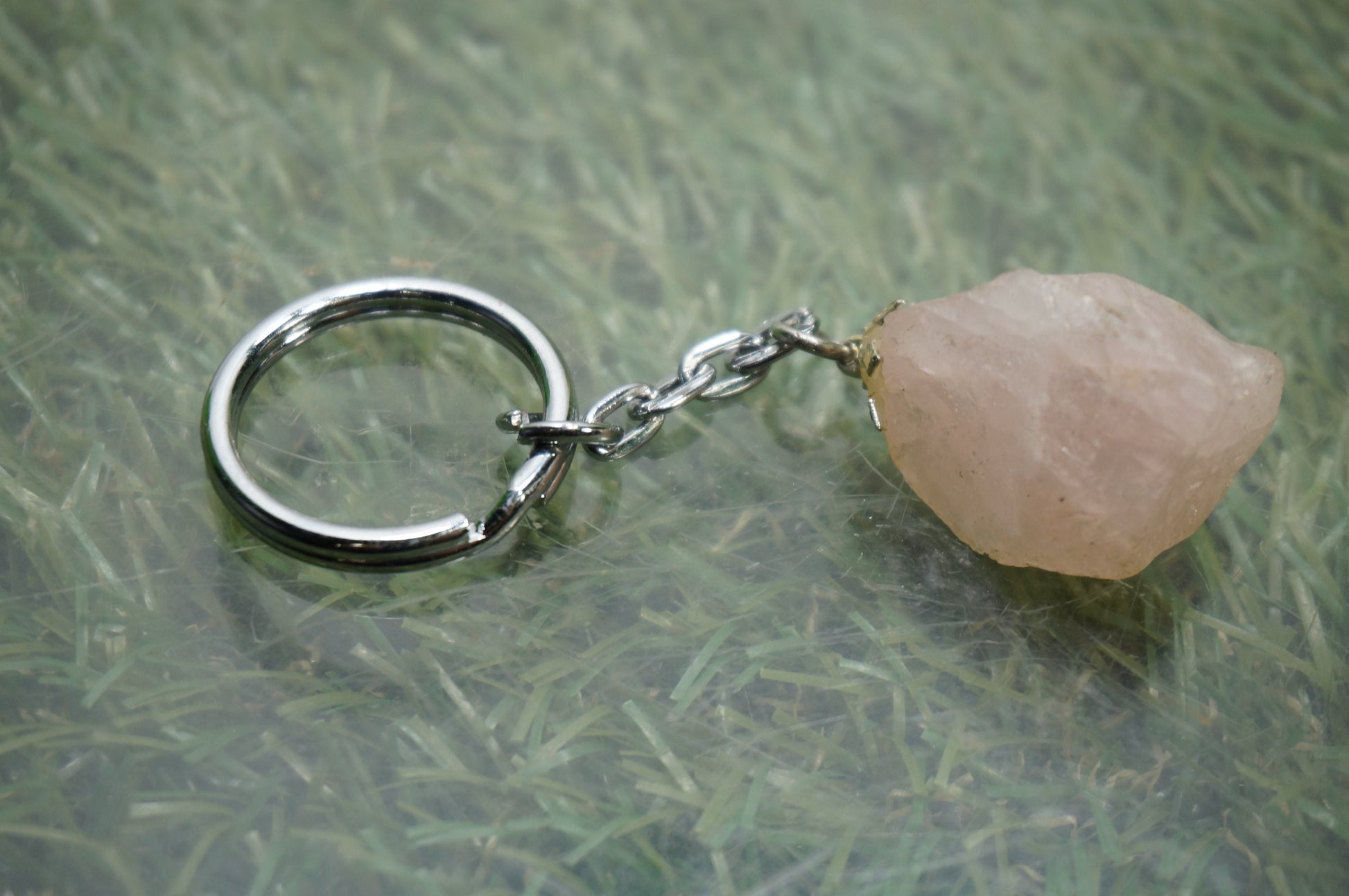 Description of keychain: accessories of silver metal colour chain and silver plated metal in the stone.