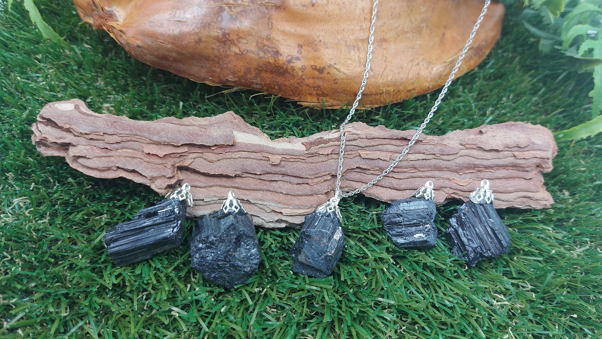 Natural Rough Black Tourmaline Schorl Rough Sterling Steel Necklace Healing Crystal Accessories Zodiac Mineral Stone