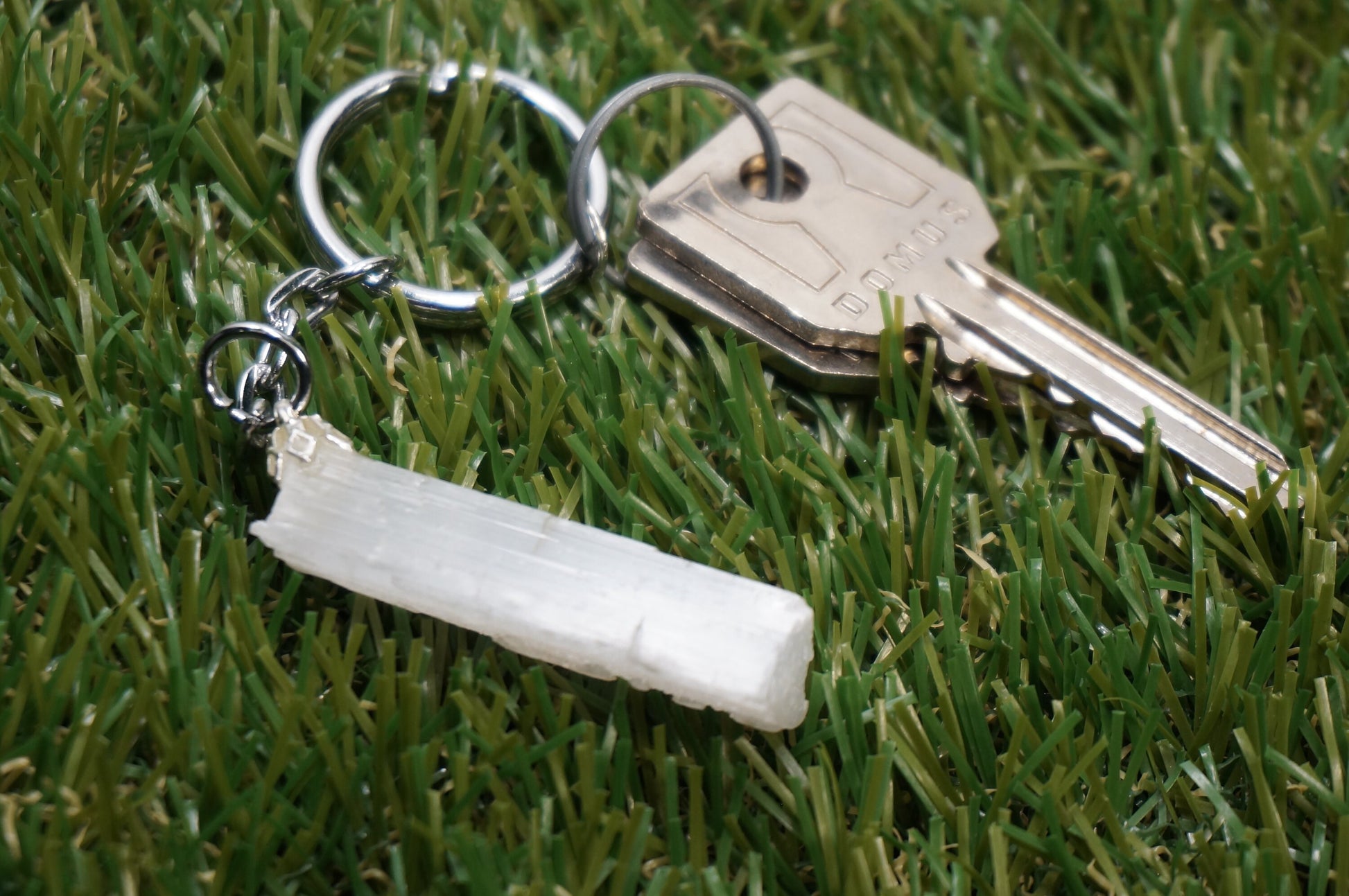 Description of keychain: accessories of silver metal colour chain and silver plated metal in the stone.