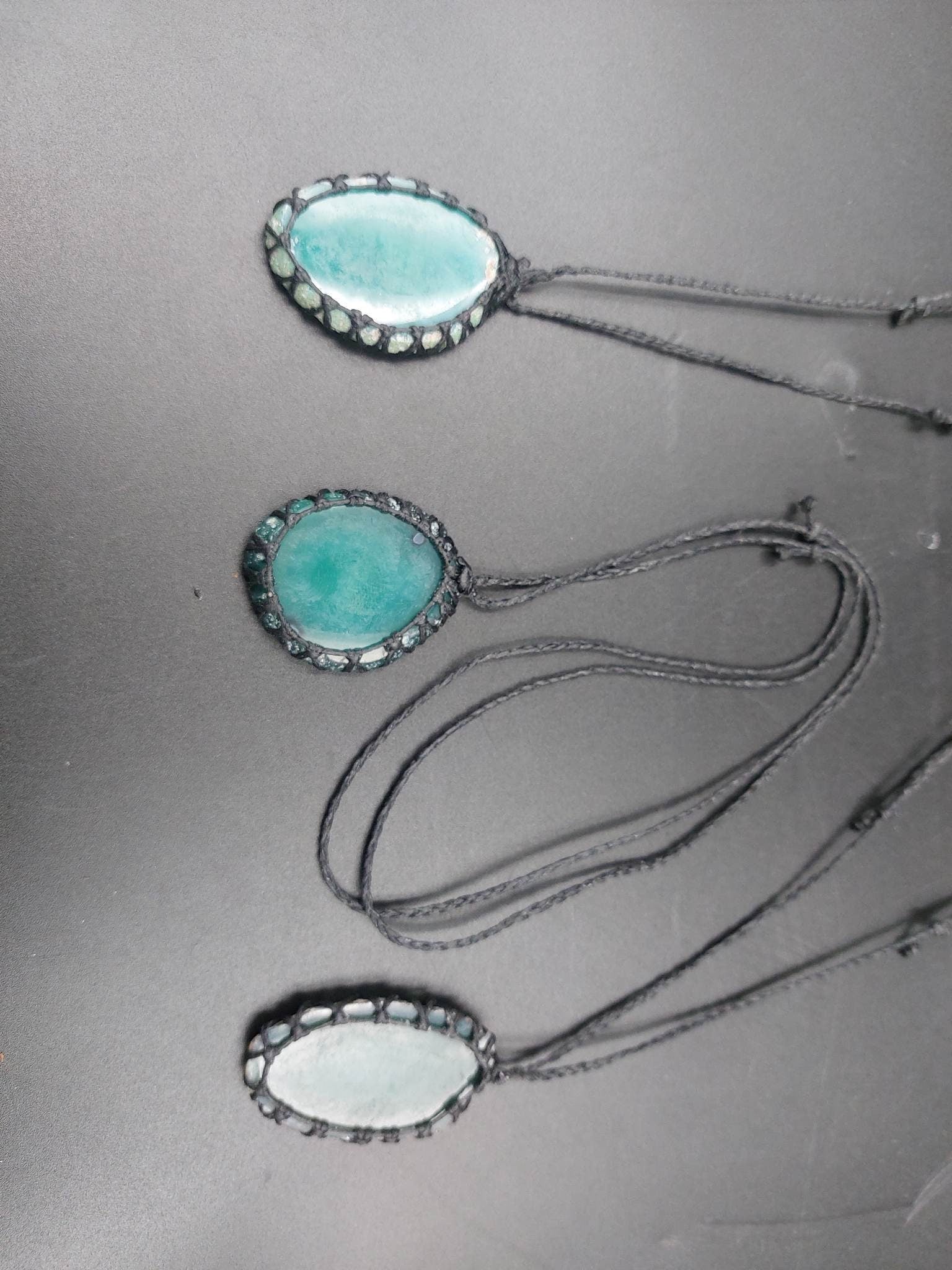 Natural Turquoise Agate Handmade Wrapped Macrame Necklace - Healing Stone - Gift Idea - Protection