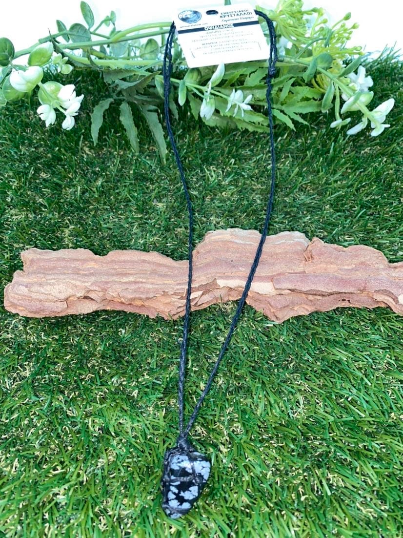 Obsidian Black Polished Macrame Wrapped Necklace Protection Gift Accessories