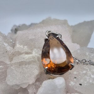 This elegant orange-brown tourmaline pendant combines earthy warmth with brilliant sparkle. The faceted teardrop gemstone glows beautifully with golden-orange and amber-brown tones, set in solid sterling silver and paired with a stainless steel chain for a modern, durable finish.