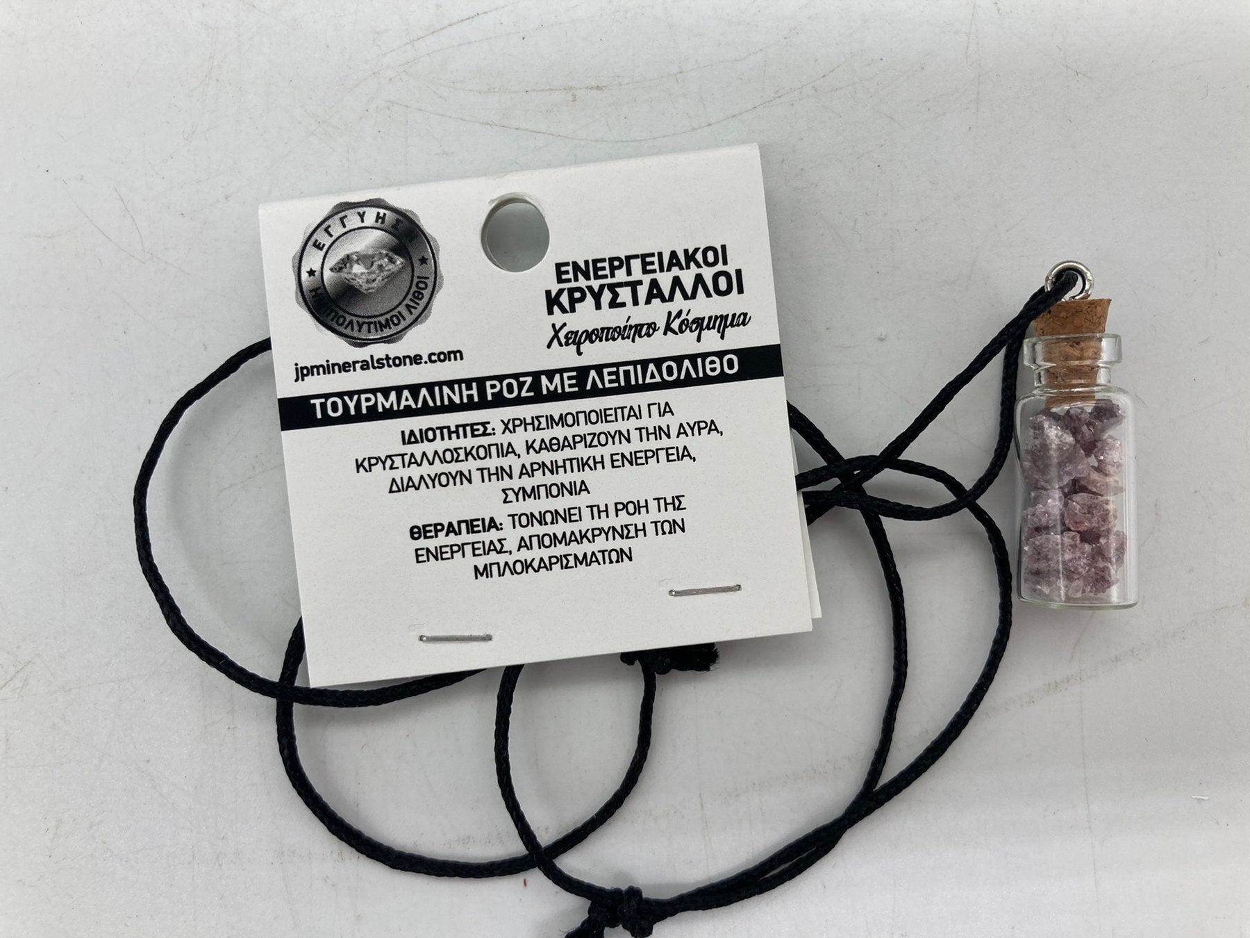 Pink Tourmaline with Lepidolite Crystal Chips Bottle Necklace