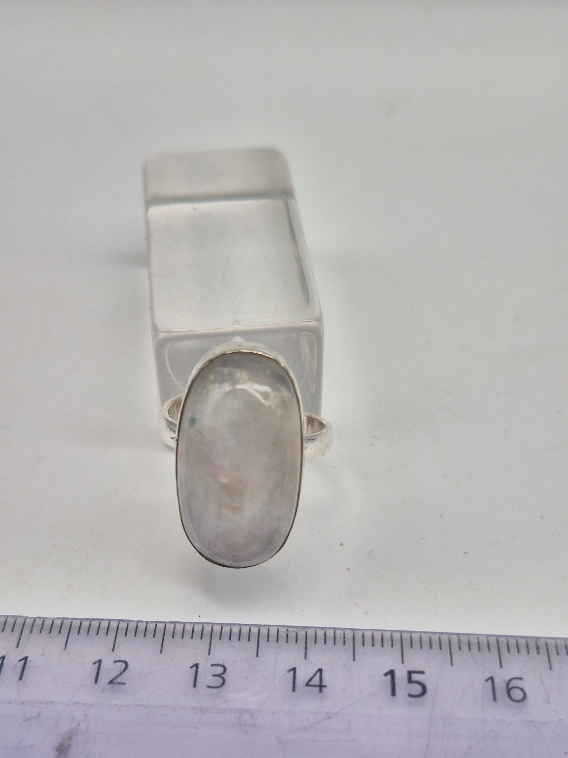 Rainbow Moonstone Adjustable Ring – Silver Plated Cabochon Iridescent Healing Crystal Jewelry