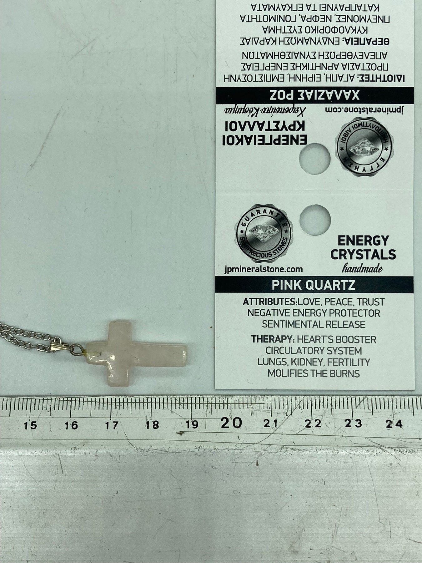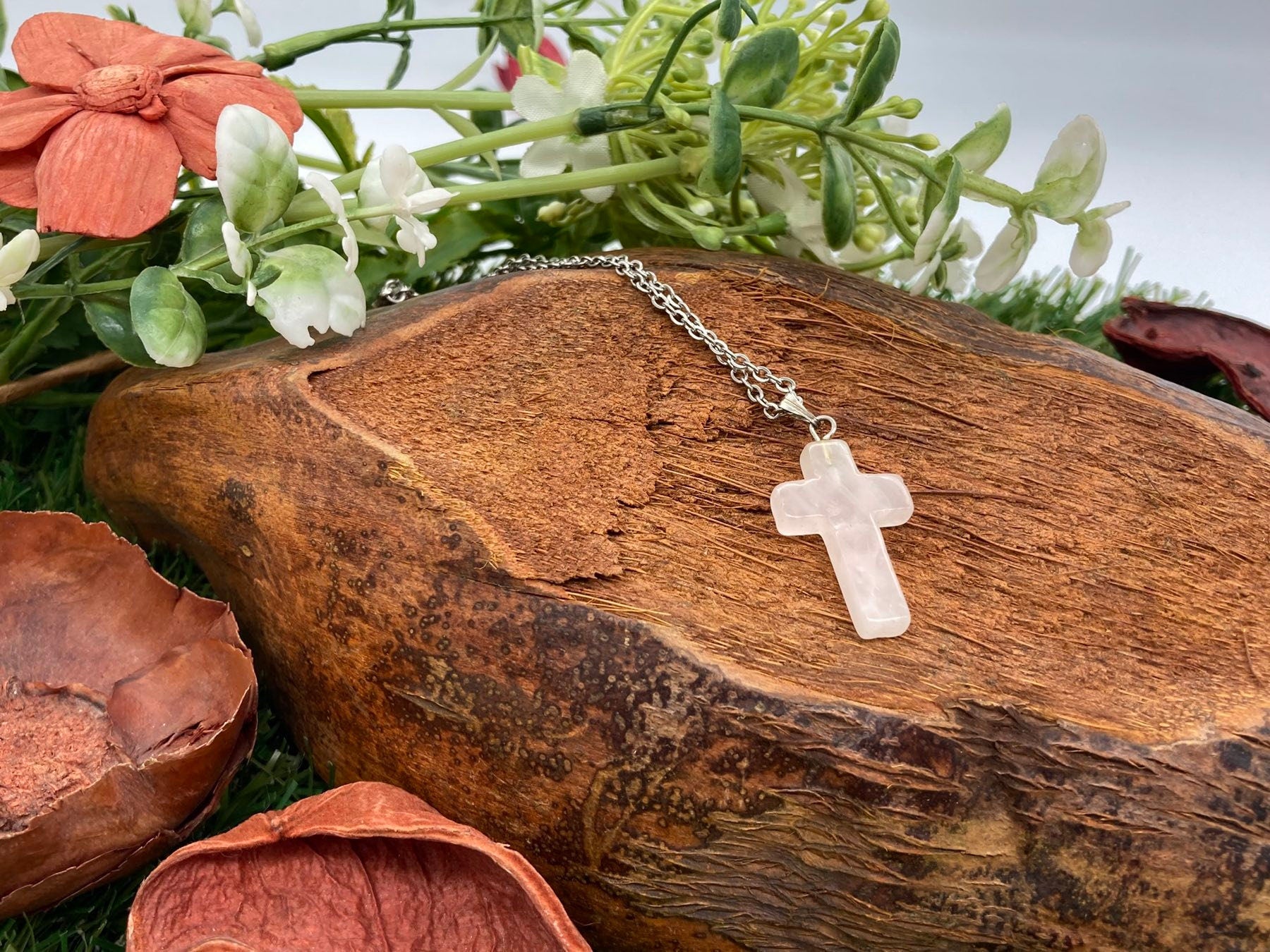 Rose Quartz Crystal Cross Sterling Steel Necklace