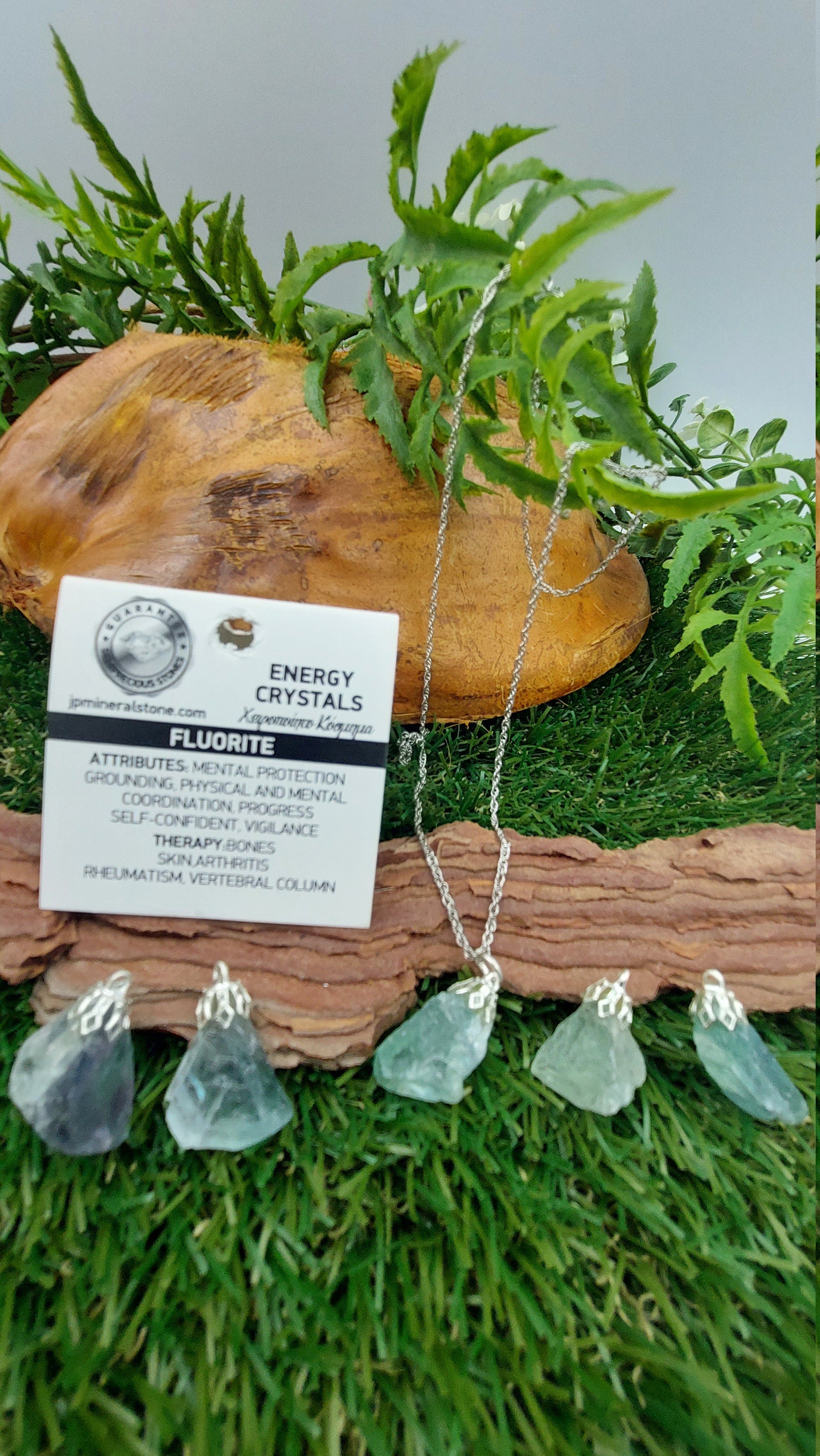 Rough Natural Fluorite Sterling Steel Necklace Healing Crystal Stone Accessories Zodiac Mineral Stone