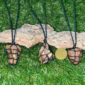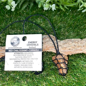 Rough Red Chalcedony - Carnelian Mineral Stone Brazilian Crystal Healing Macrame Wrapped Necklace Protection Gift Accessories